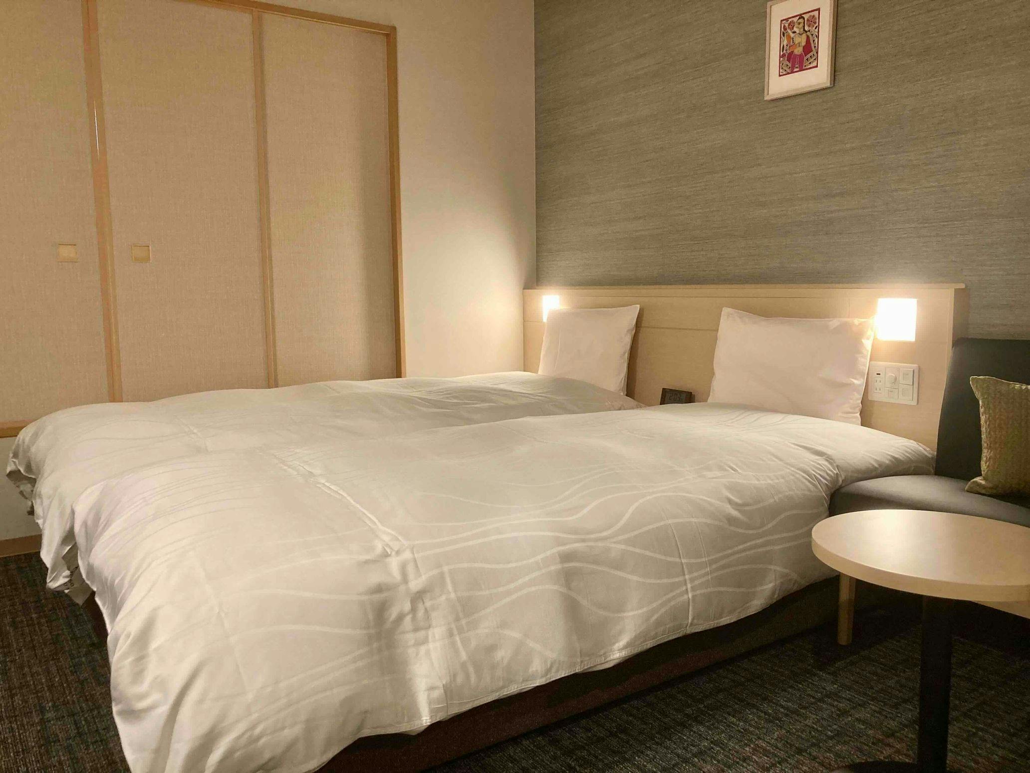 【禁煙】 ■25.7平米-27.3平米 ベッドサイズ(110×195cm)×2台 ■檜風呂 ■55型有機ELテレビ ■加湿空気清浄機完備