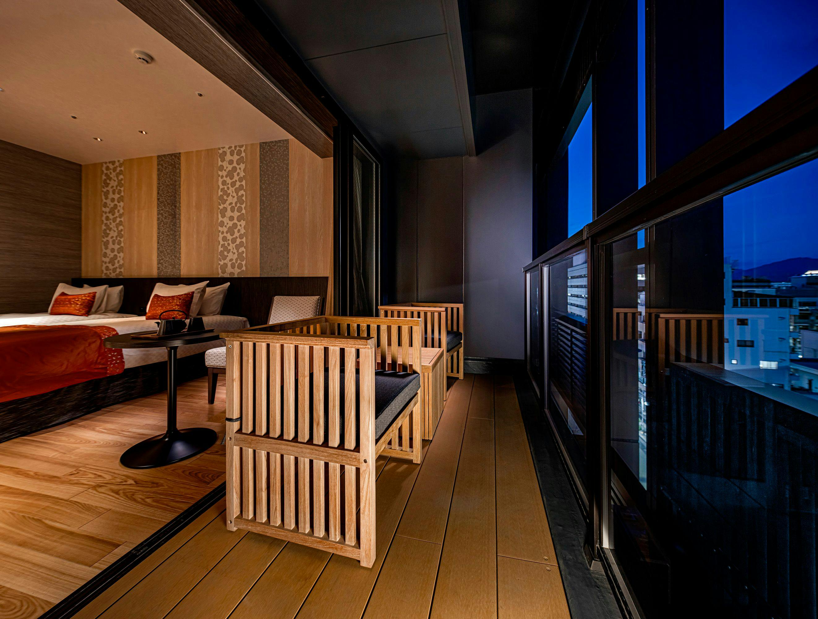 寛ぎをかなえるテラススペースを設けた、コンテンポラリーでモダンなプレミアムツイン3名様にてご宿泊の場合はソファベッド1台を追加いたします■シモンズ社ベッド■洗い場付バス・洗面台・トイレはセパレートタイプ■SOU・SOUの上下が分かれたパジャマ■加湿空気清浄器完備