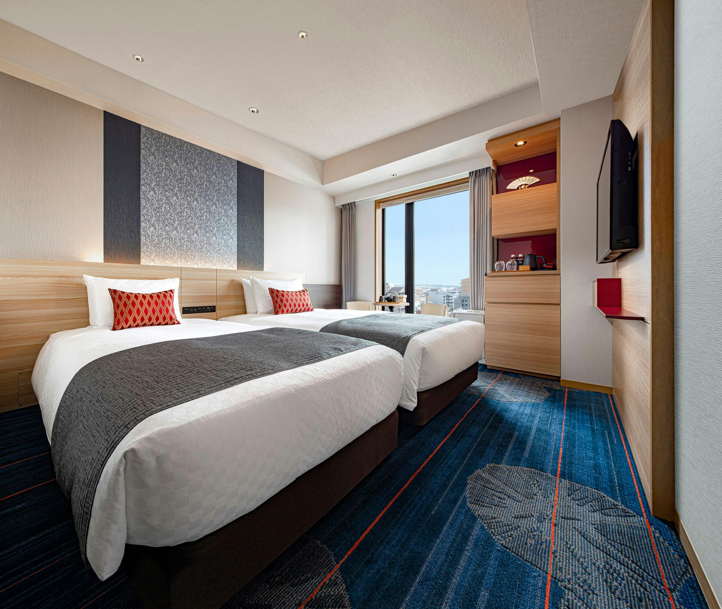 京の上品さの中に、心地よいカジュアル感を加えたスタンダードツイン■シモンズ社ベッド■洗い場付バス・洗面台・トイレはセパレートタイプ■SOU・SOUの上下が分かれたパジャマ■加湿空気清浄器完備■ハリウッドツインも可能でございます。
