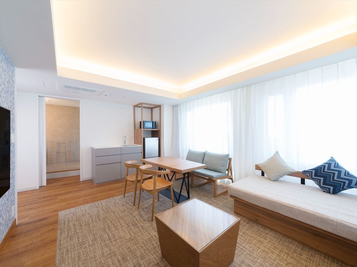 59平米の広々としたこちらの部屋は寝室とリビングが別々の設計。4名様までご宿泊可能ですのでご家族やグループ旅行におすすめ。