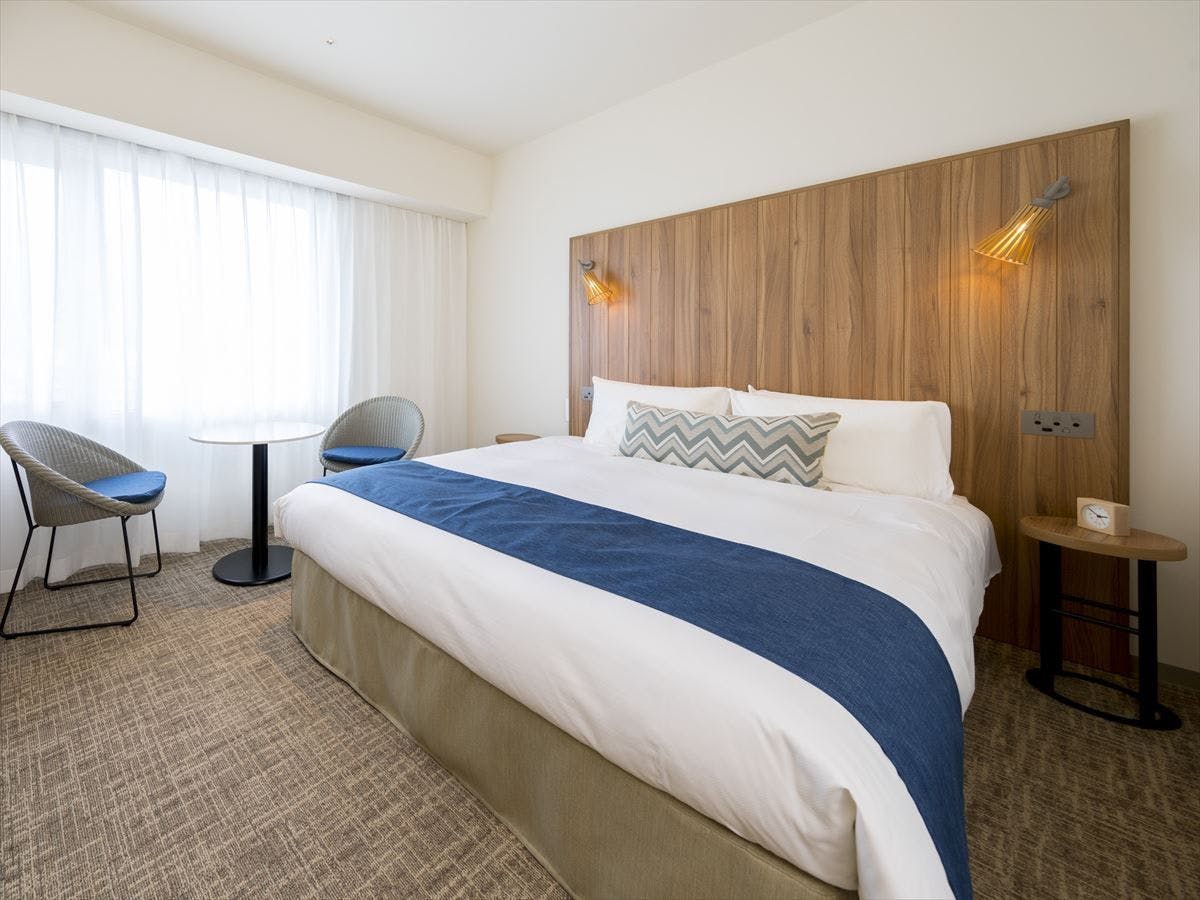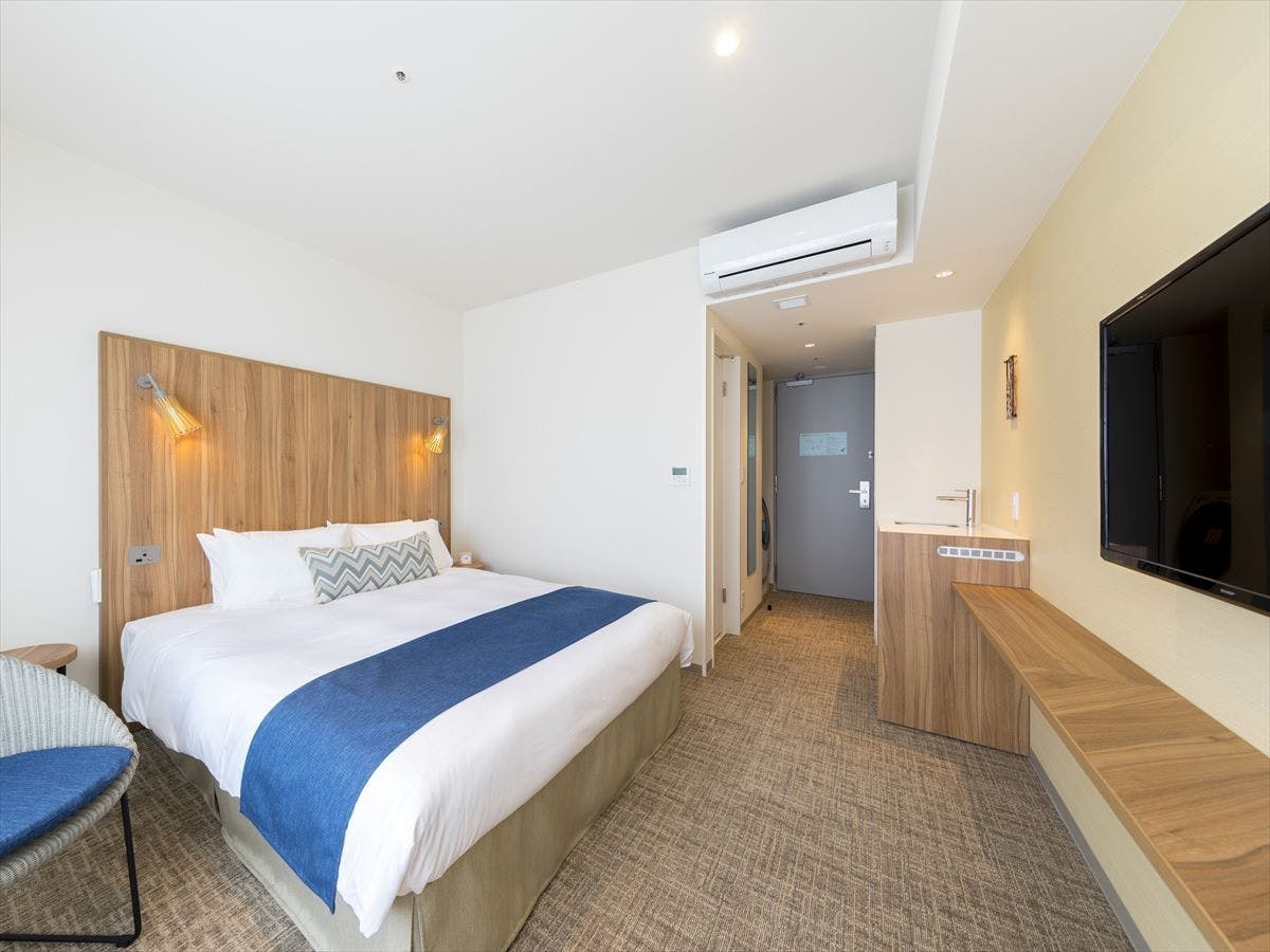 幅160cmサイズベッドが入ったお部屋。お一人様でのご宿泊やカップル、ご夫婦、なかよし女子旅におすすめ。160cmのゆとりのあるベッドなのでゆったりお寛ぎいただけます。イスやテーブルも配置され、滞在中の時間を有意義に過ごすことが出来ます。心やすらぐ時間をゆっくりとお過ごしください。