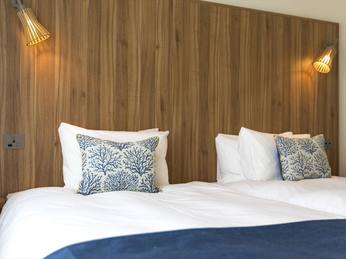 ベッドとベッドをくっつけて隙間なく設置していますので、家族みんなで並んで眠れる広々ベッドなので小さな添い寝のお子様がいても安心です。ベッドをつないだ広さは横幅220cmとゆとりをもってお休みいただけます。ゆっくりと寛ぎたいお一人様のご利用もお薦めのお部屋です。