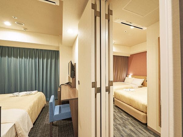 客室内で往来可能なお部屋 シングルベッド2台とダブルベッド1台 WiFi無料接続