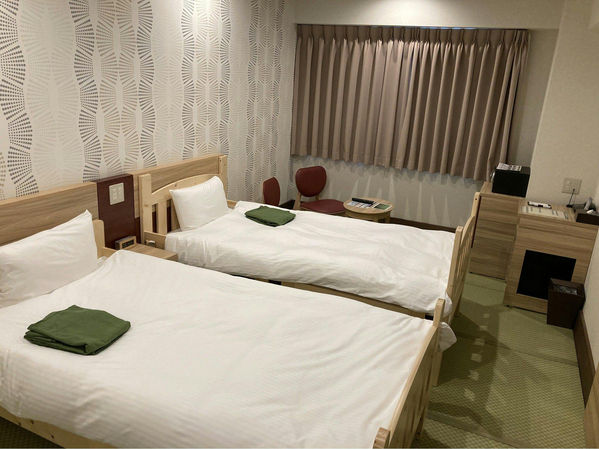 【禁煙】角部屋となる静かで広めのツインルーム / ベッド100x200 / Wi-Fi完備 最大4名様までご利用いただけます。 レディースルーム専用バスアメニティやフットマッサージ機、フェイスケア(スチーマー)などうれしいアイテムが満載。