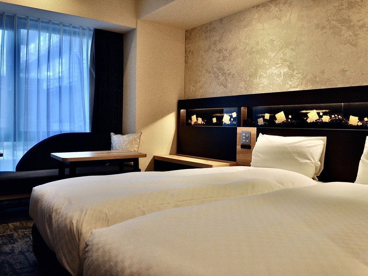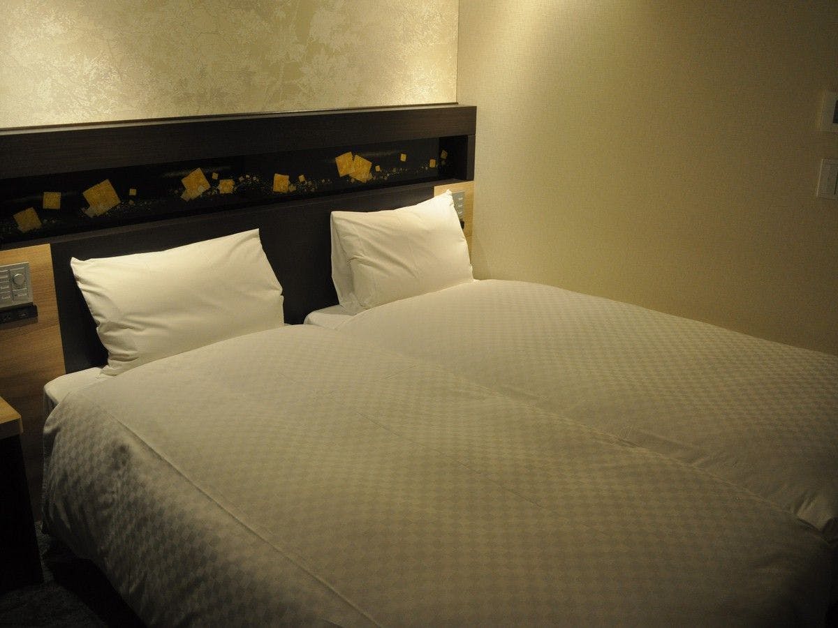 【全室禁煙】【朝食付き】17平米のお部屋にワイドシングルサイズのベッド(110センチ幅)を2台並べて配置したハリウッドタイプのお部屋です。テーブル&ソファと40型液晶テレビをご用意しております。お仕事でのご滞在だけでなく、ご家族やご友人同士のお客様にも適したお部屋です。