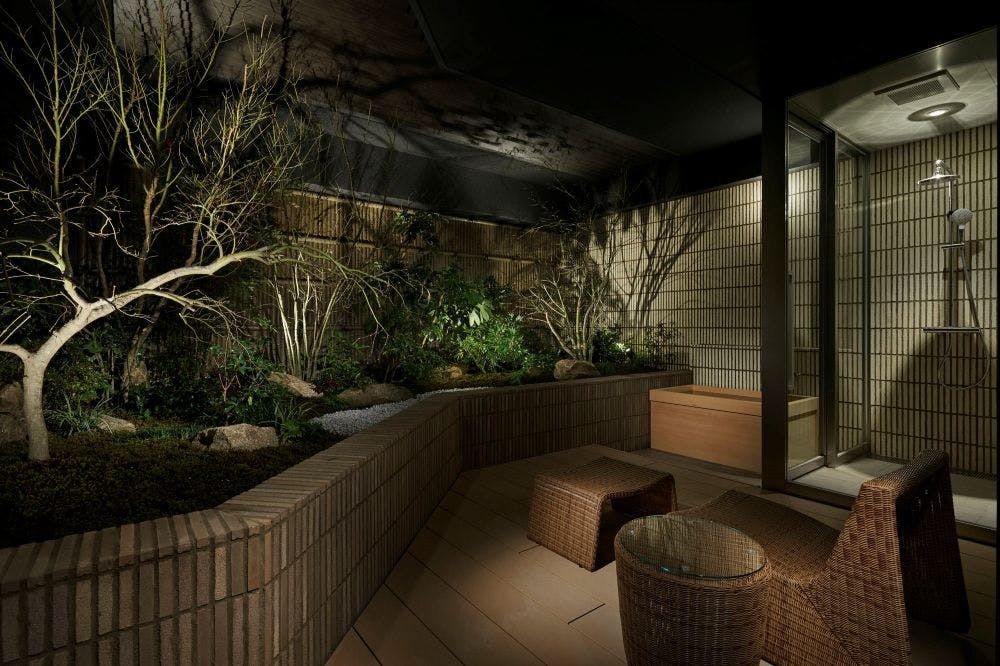 広々としたテラスには、庭園と外風呂があるプレミアムタイプ。