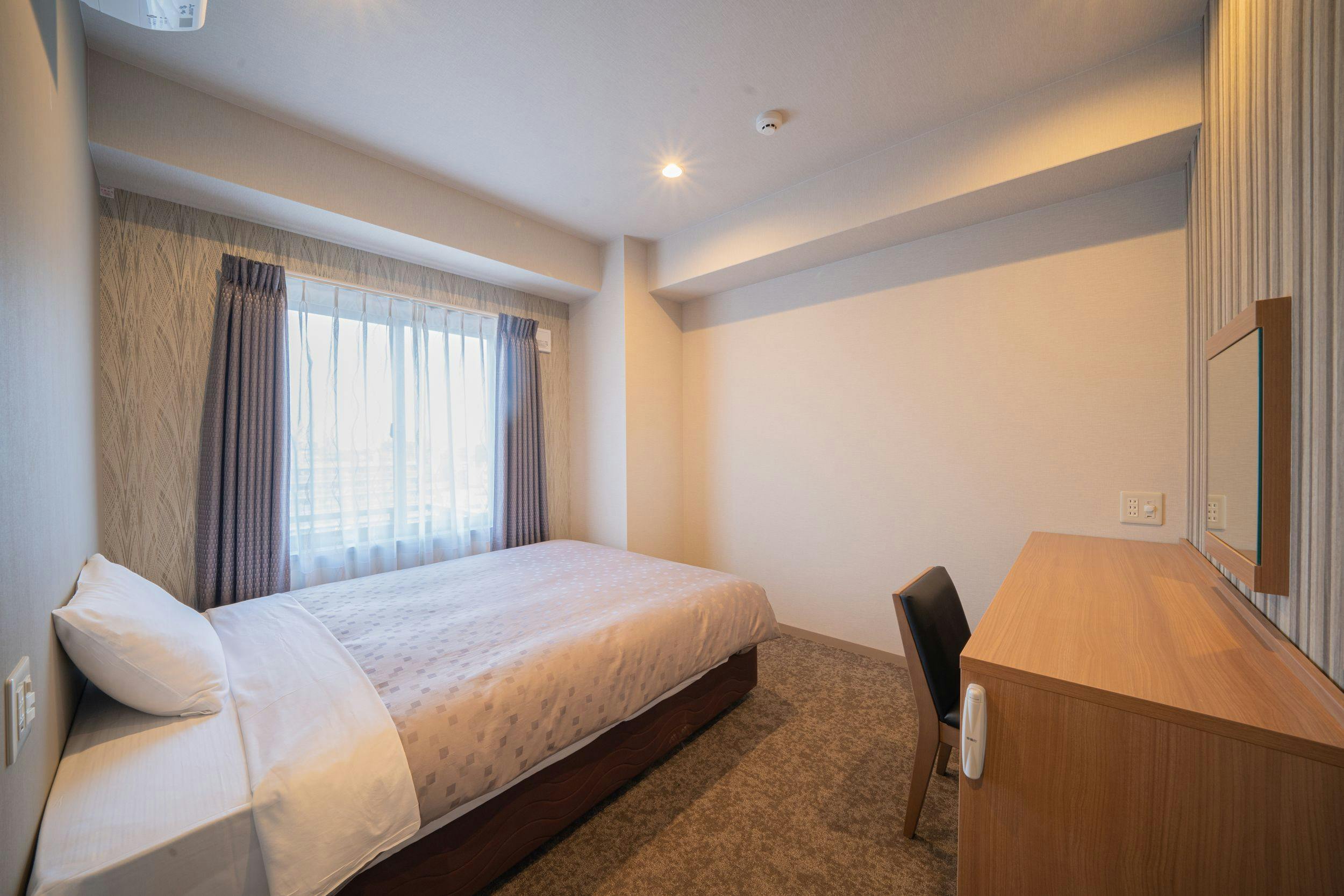 セミダブルベッド1台のお部屋です。ベッドサイズ幅120cm×200cm、お部屋の広さ11m2~12m2。禁煙のお部屋です。喫煙可能なお部屋はございません。予めご了承ください。■客室内で有線・無線LANインターネット接続無料■全室ウォシュレット完備■テレビ・マイナスイオンドライヤー・電気ケトル設置。