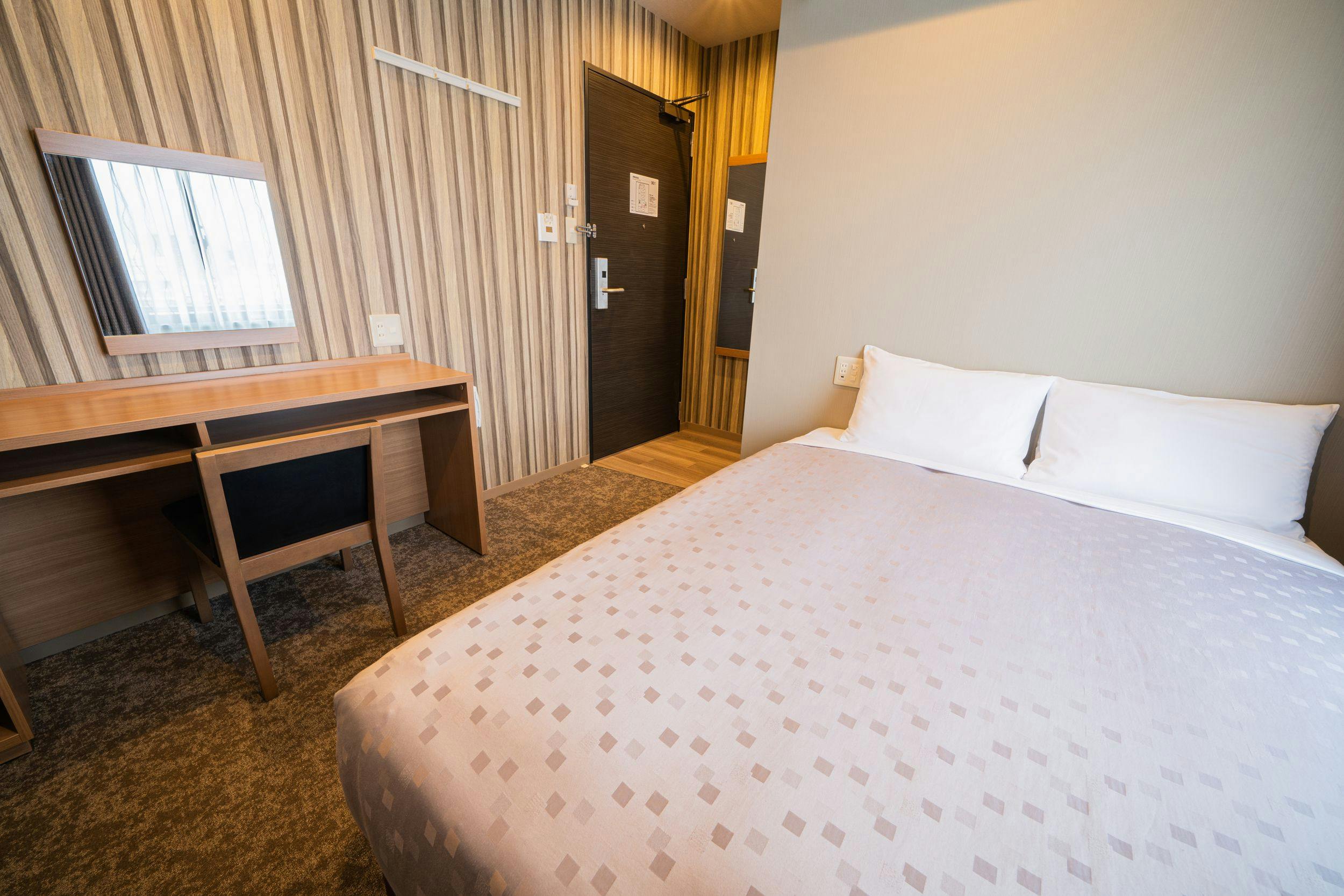 ダブルベッド1台のお部屋です。ベッドサイズ幅140cm×200cm、お部屋の広さ12m2。禁煙のお部屋です。喫煙可能なお部屋はございません。予めご了承ください。■客室内で有線・無線LANインターネット接続無料■全室ウォシュレット完備■テレビ・マイナスイオンドライヤー・電気ケトル設置。