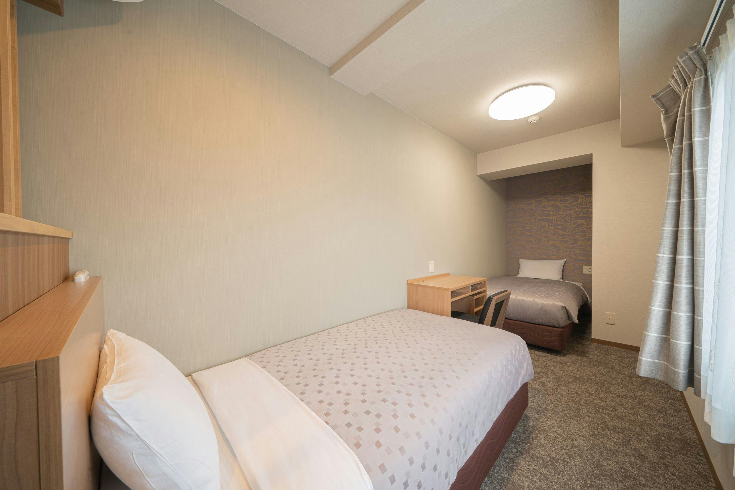 セミダブルベッド2台を並べたツインルームです。(セミダブルベッド2台を2名様でご利用頂くお部屋でございます)ベッドサイズ幅120cm×200cm、お部屋の広さ20m2。禁煙のお部屋です。喫煙可能なお部屋はございません。予めご了承ください。■客室内で有線・無線LANインターネット接続無料■全室ウォシュレット完備■テレビ・マイナスイオンドライヤー・電気ケトル設置。