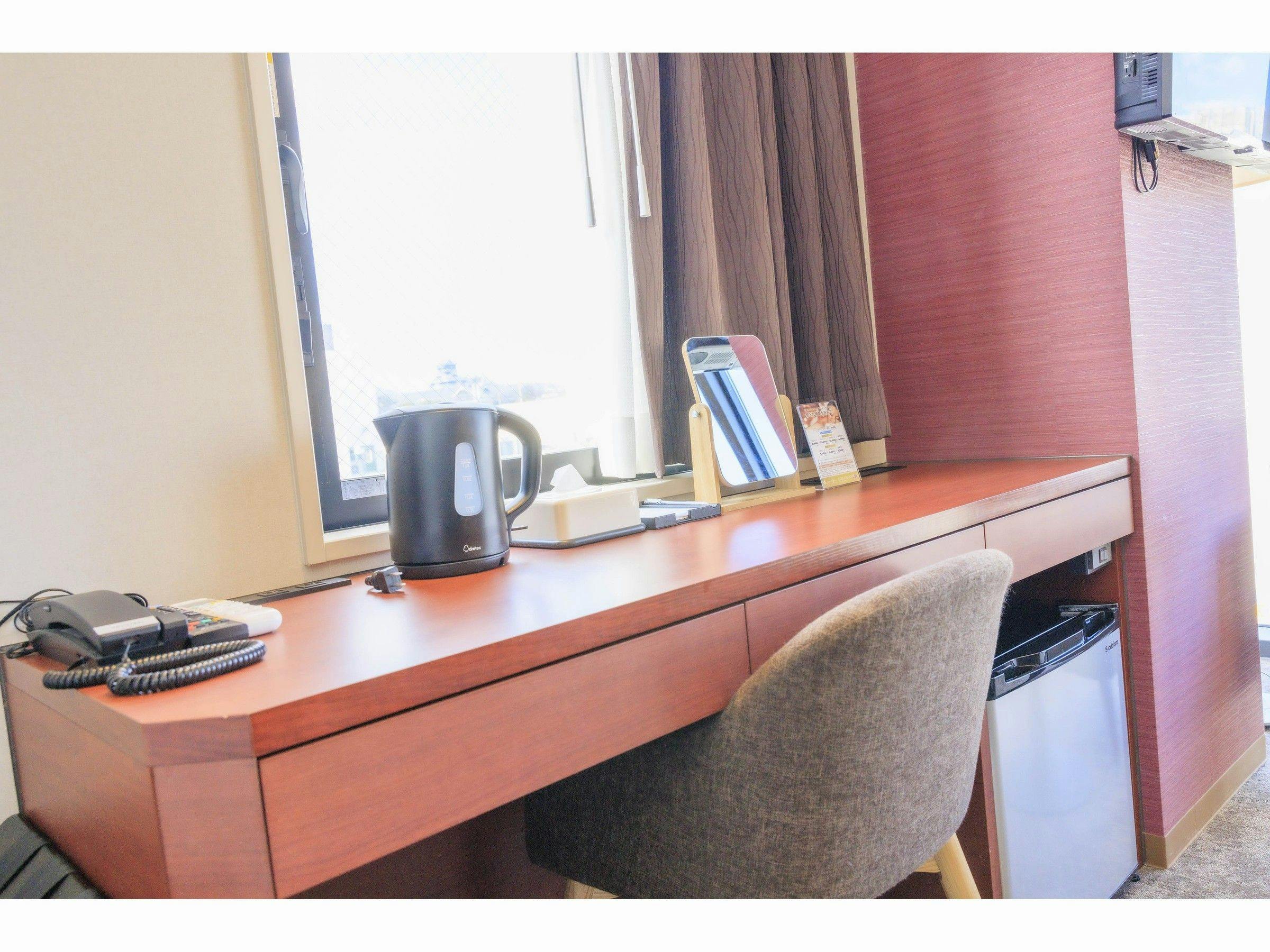 お部屋の広さ 13平米ベッドサイズ 140センチ幅設備・無線LAN無料・40型液晶テレビ・空の冷蔵庫・電気ケトル・浴室・アメニティバイキング・ドライヤー・熊本の天然水・VOD(ビデオオンデマンド)視聴無料人気作品が無料で視聴可能!洋画・邦画・バラエティ等40型テレビでお好きなコンテンツをいつでもお楽しみいただけます。