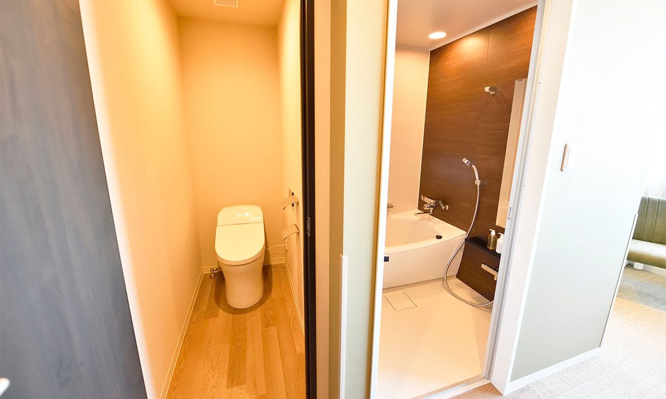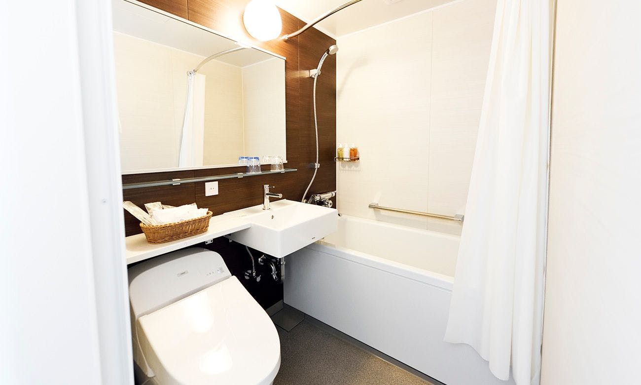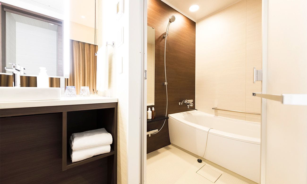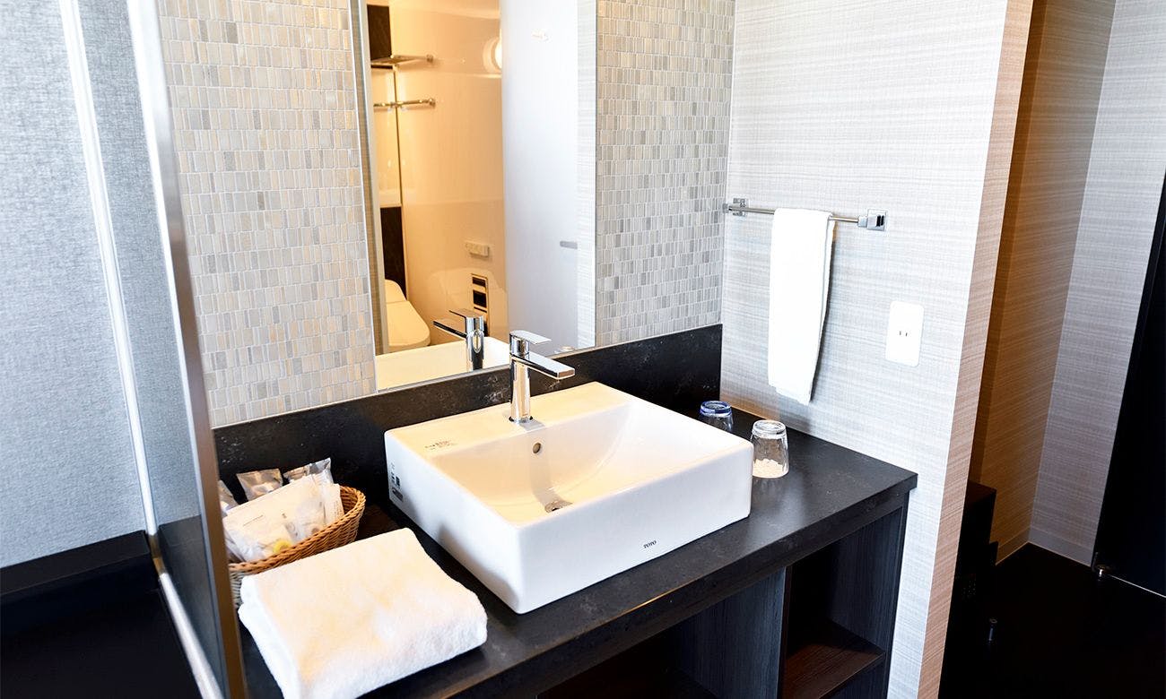 ■ 部屋の広さ 24.2平米 ベッド 120cm×203cm ■モダンなインテリアがもたらす落ち着きの空間洗い場付きバスルーム、トイレ、洗面台を独立【 全タイプ共通設備(全室禁煙)】 ・Wi-Fi・枕元USB&コンセント・空気清浄機・寝心地を追求したスランバーランド製ベッド