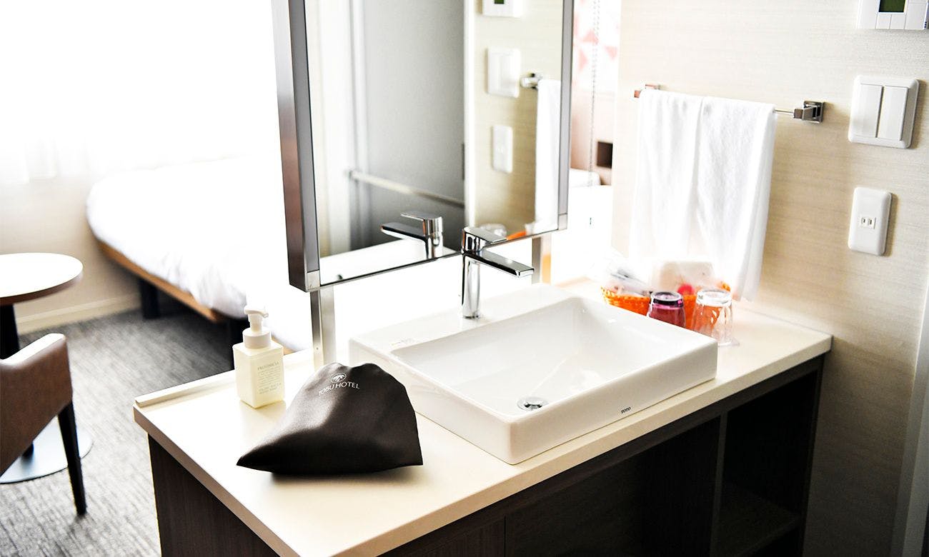 ■ 部屋の広さ 22.6平米 ベッド 150cm×203cm ■客室内で車椅子の転回が可能扉の幅:客室入口92cm/バスルーム入口90cm【 全タイプ共通設備(全室禁煙)】 ・Wi-Fi・枕元USB&コンセント・空気清浄機・寝心地を追求したスランバーランド製ベッド