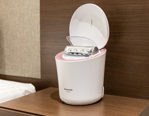 フェイススチーマーや衣類スチーマーに加え、ネスプレッソマシーンをご用意しました。ベッドはシモンズ製のシングルサイズベッド2台を隙間なく並べたハリウッドタイプですので、小さなお子様連れにも安心です。