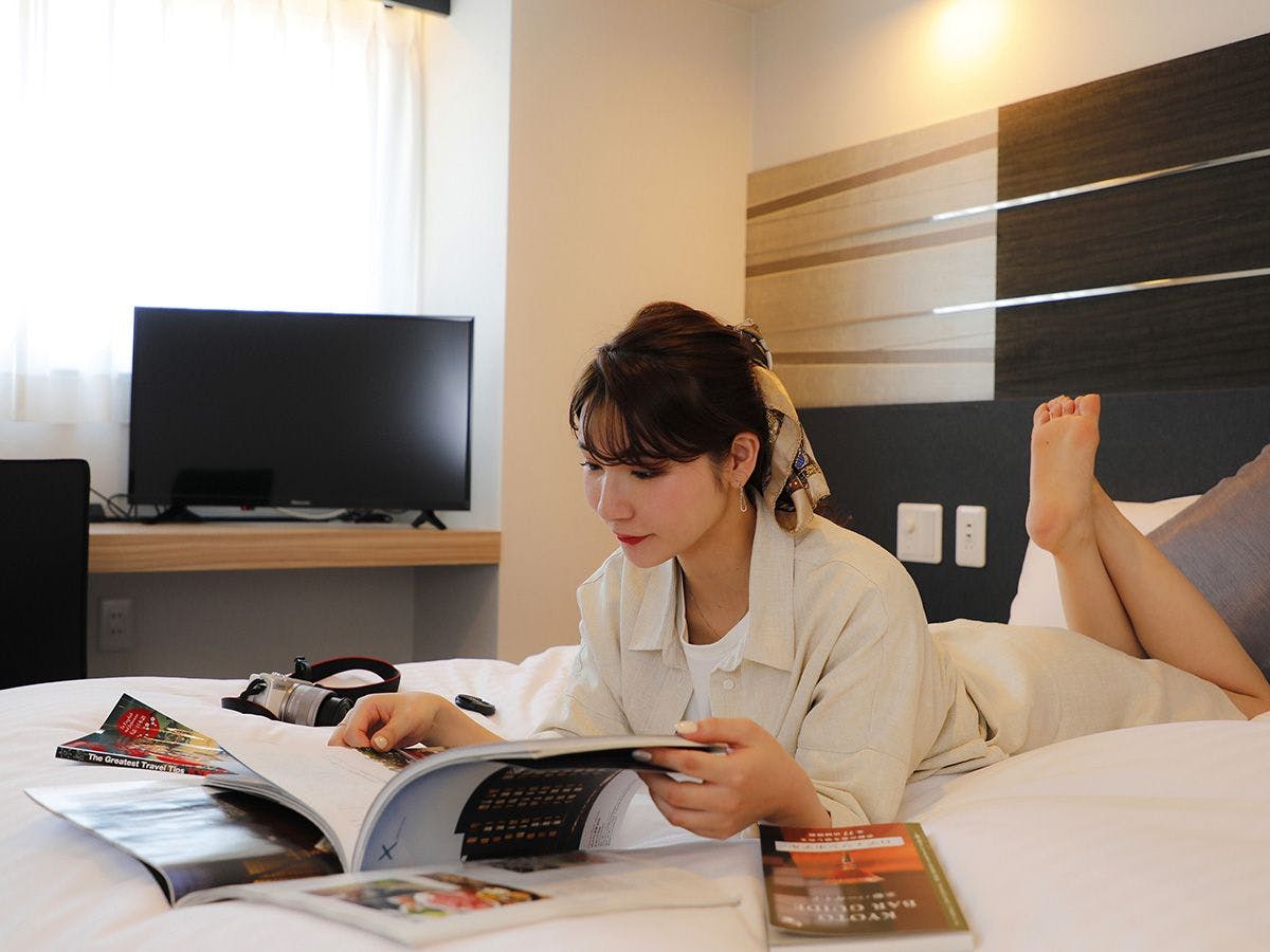 無料Wi-Fi、液晶テレビ、加湿機能付き空気清浄機、ユニットバス、温水洗浄トイレ、シャンプー、コンディショナー、ボディソープ、洗顔ソープ、バスタオル、フェイスタオル、ルームウェア、ドライヤー、各種アメニティセット、電気ケトル、冷蔵庫、グラス、湯飲み、アイスペール、スリッパ、ブラシ、