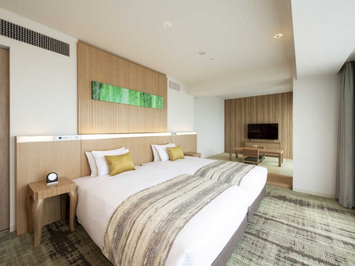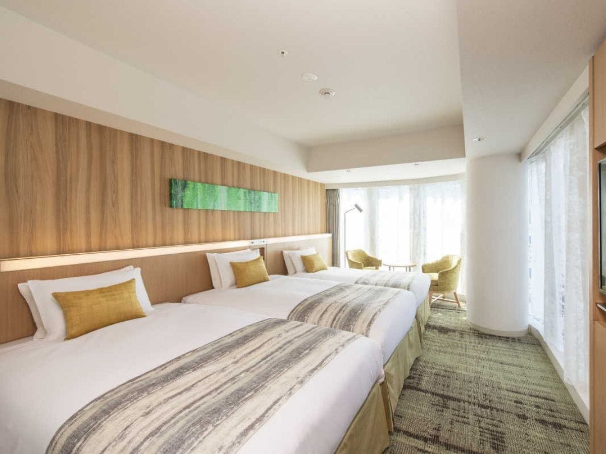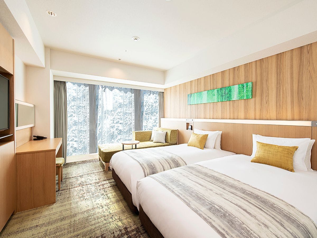 仙台の街並みを一望でき開放感に浸れるデラックスツイン。