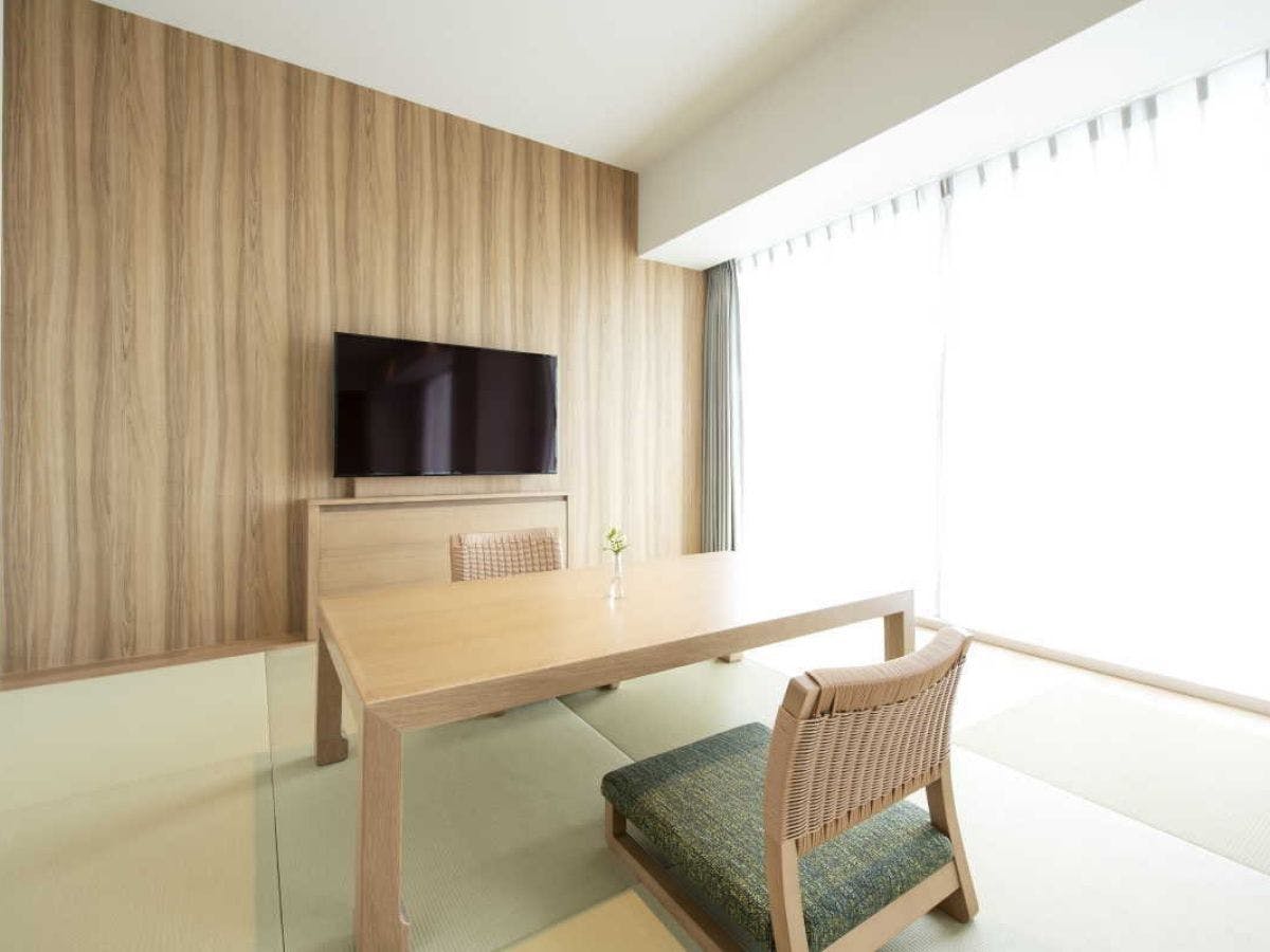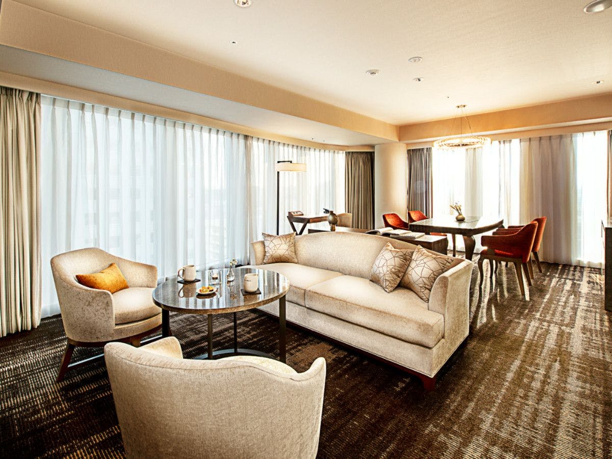 大きな窓を備えた高層階の客室は開放感に浸れ、