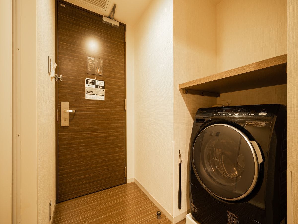 部屋面積:16平米ベッド幅:140×195センチのダブルベッド洗濯乾燥機付き