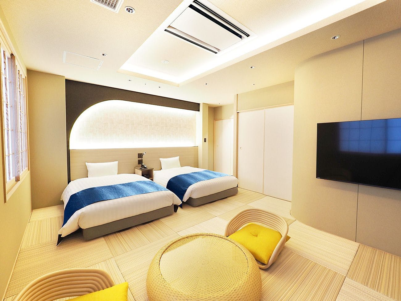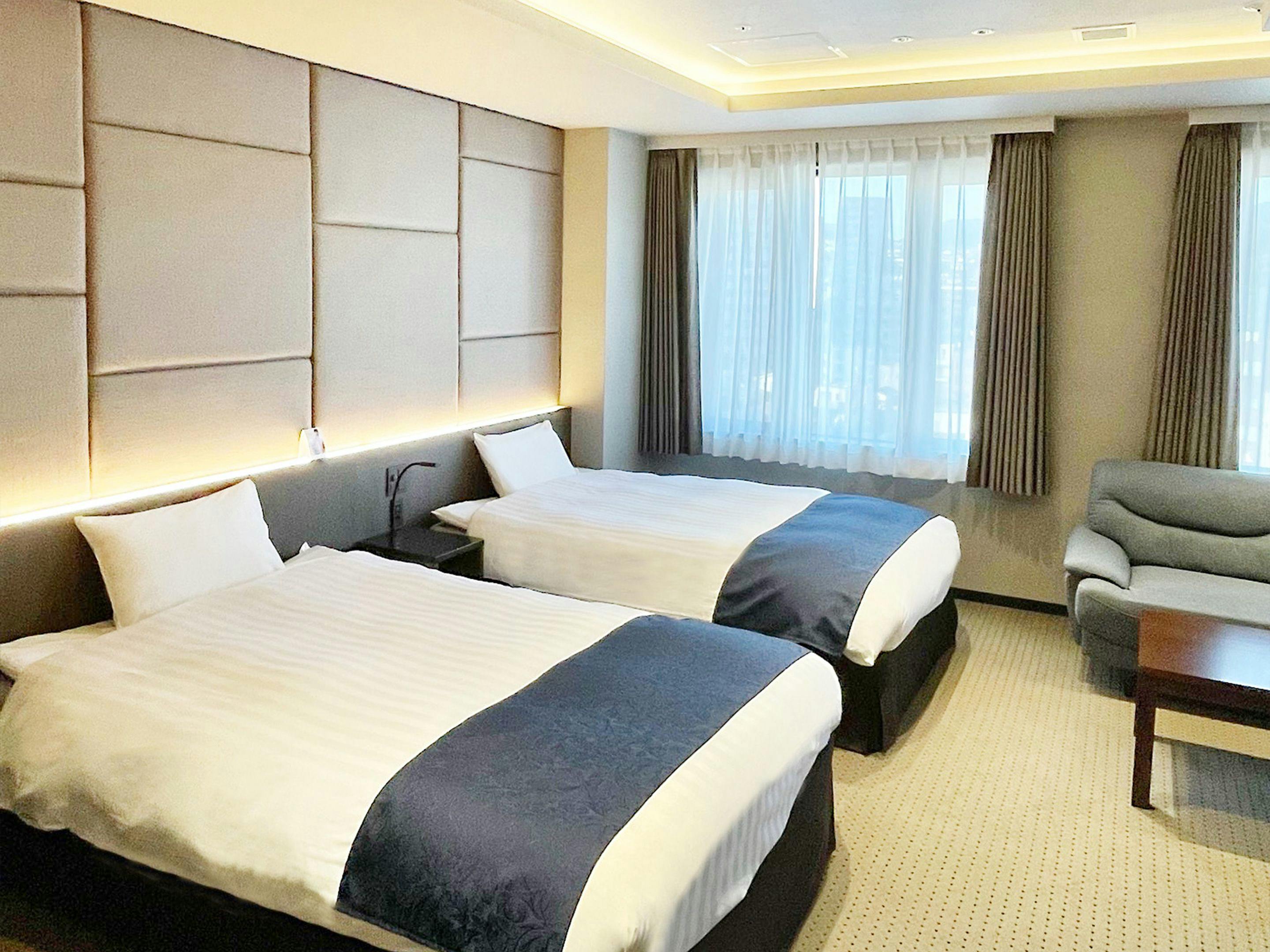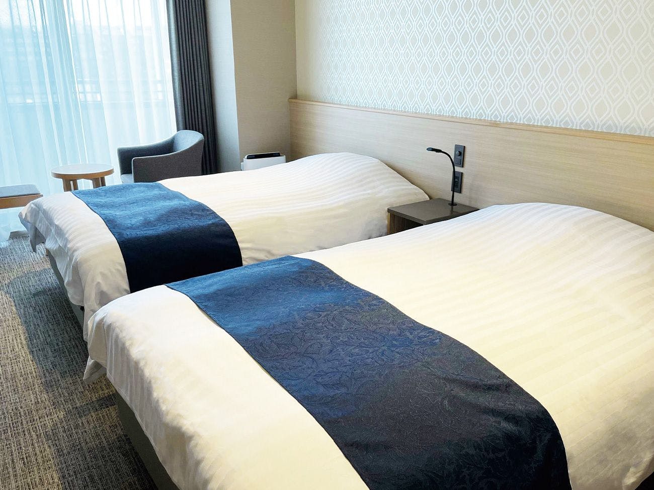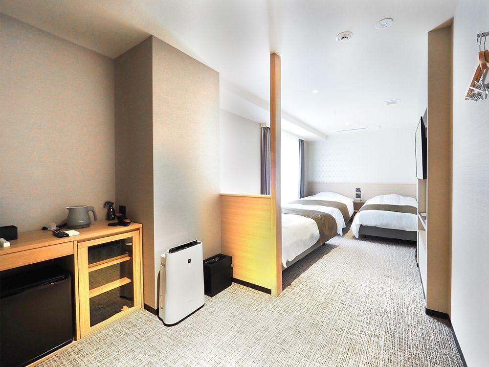 【全室禁煙】26平米・シャワーブースタイプ・ベッドサイズ1600×2台・西川「Air」マットレス・シャワーヘッド「ミラブル」・コーヒーマシン・Bluetoothスピーカー