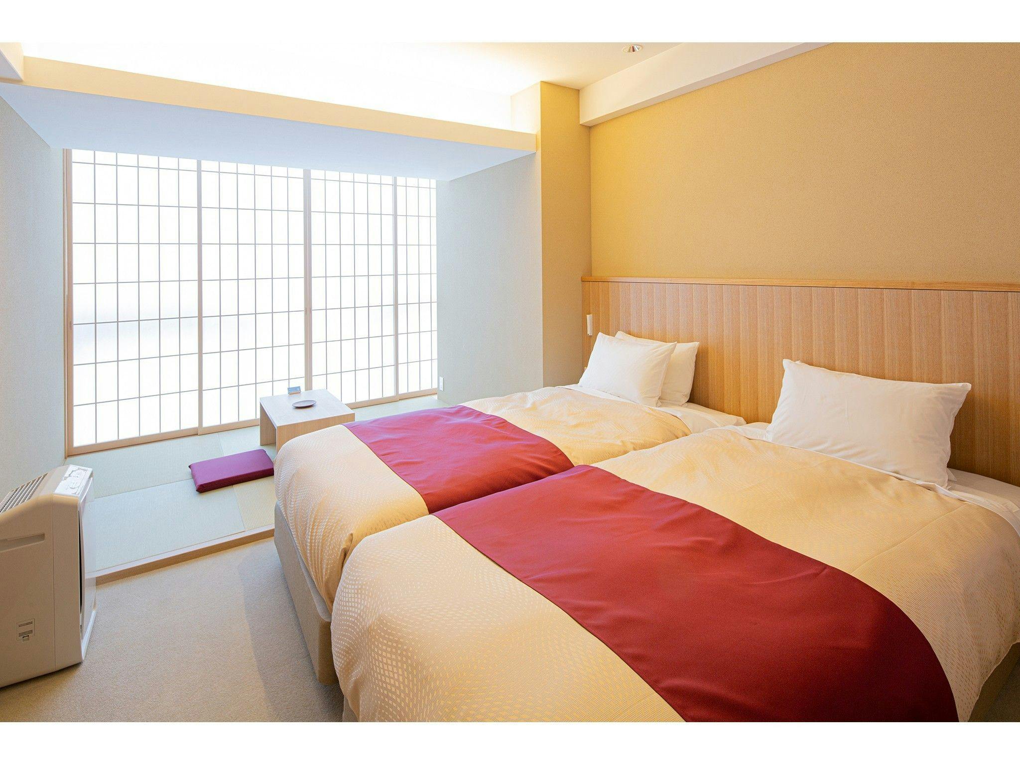※すべての客室は禁煙です。通常より広いベッド幅105cmのベッドが2台!お二人でもゆっくりとお休みいただけます!■標準装備・液晶TV・空の冷蔵庫・加湿器付空気清浄機・ドライヤー・金庫・インターネット有線・無線LAN(無料)