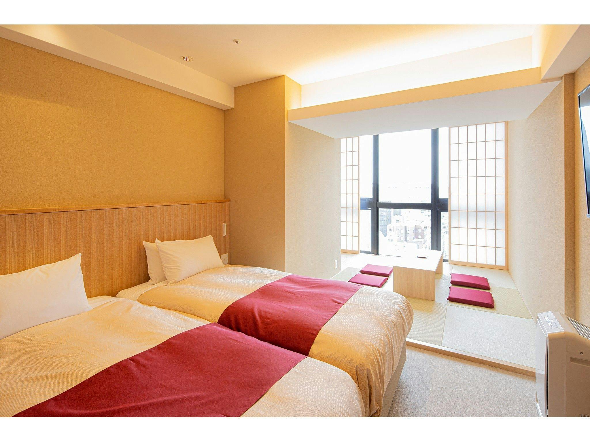 ※すべての客室は禁煙です。※布団は大人3名以上の場合のみ提供いたします。シングルべッド2台、大人3名様以上の場合は和室でお布団!■標準装備・液晶TV・空の冷蔵庫・加湿器付空