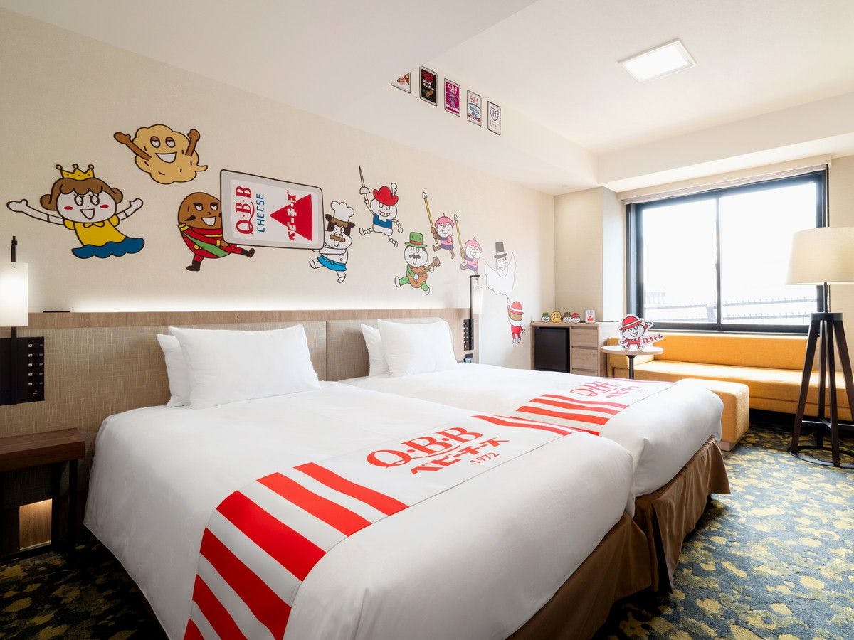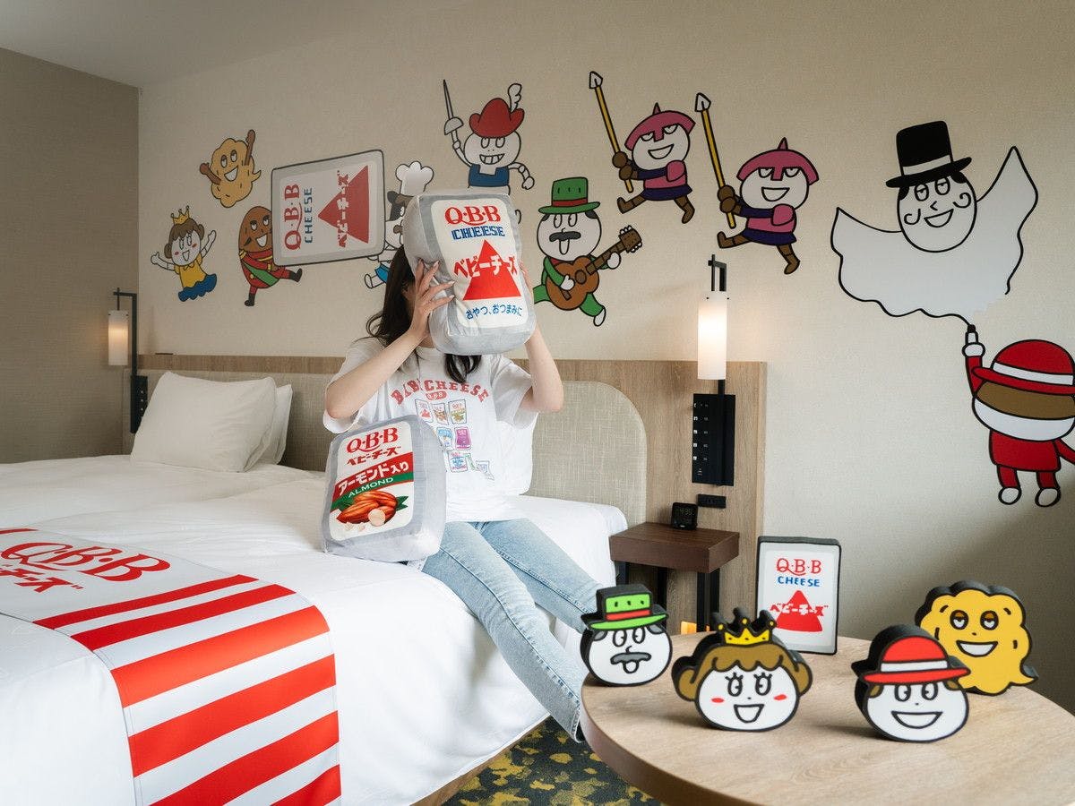 Qちゃんが住むQBBチーズランドに住むキャラクターたちがホテルでパーティーを開催しているお部屋に、ご宿泊ゲストのみなさまをお招きします。