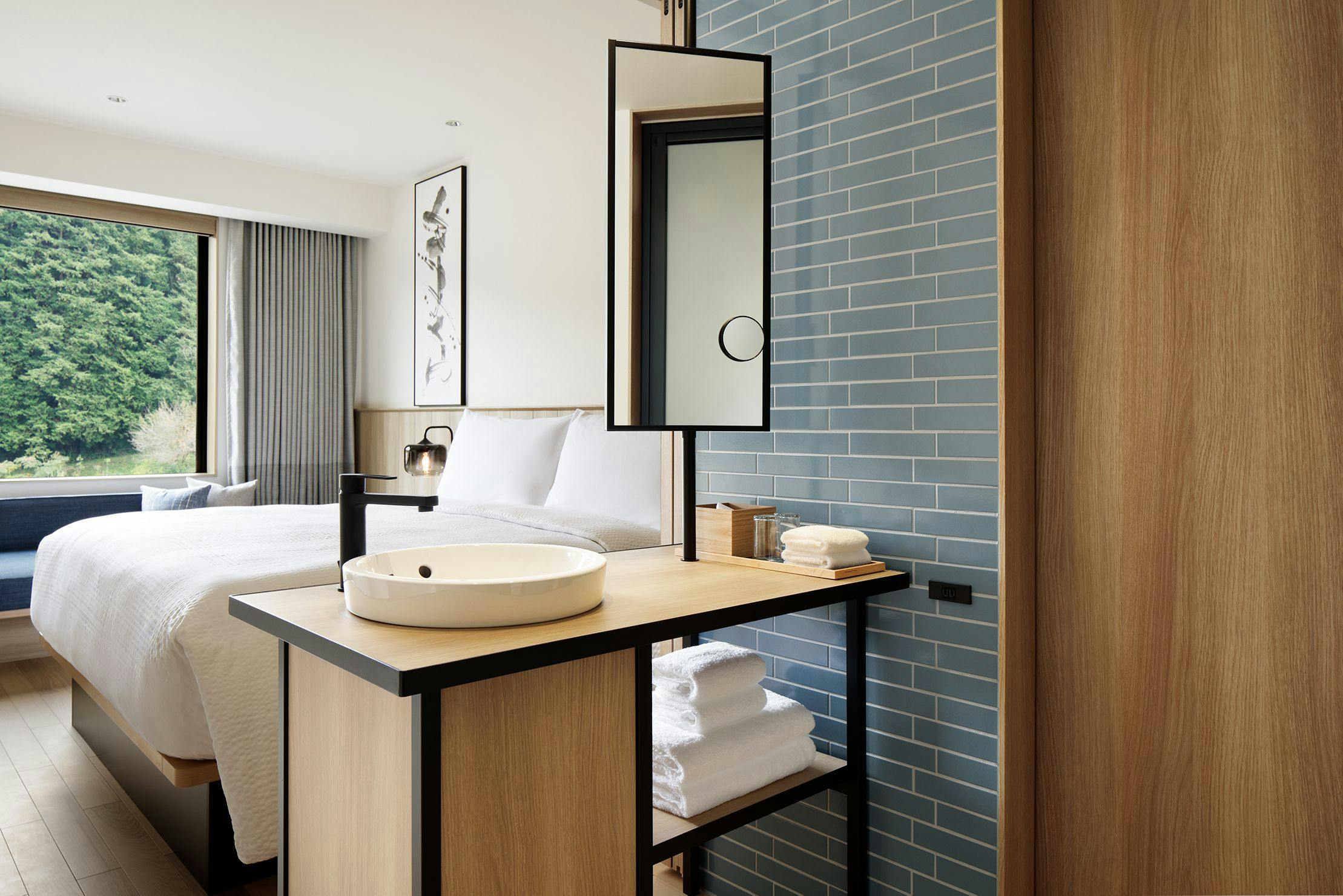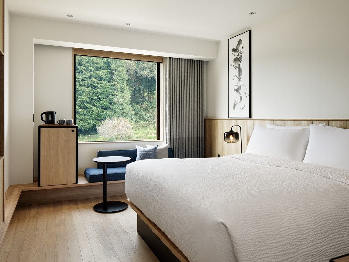 52室の客室は平均25平米とコンパクトながら、シャワーブースを設けることで、シンプルでゆとりのある空間を実現しました。寝心地のいいベッドはもちろん、無料Wi-Fiも備えており、快適に過ごしていただけます。