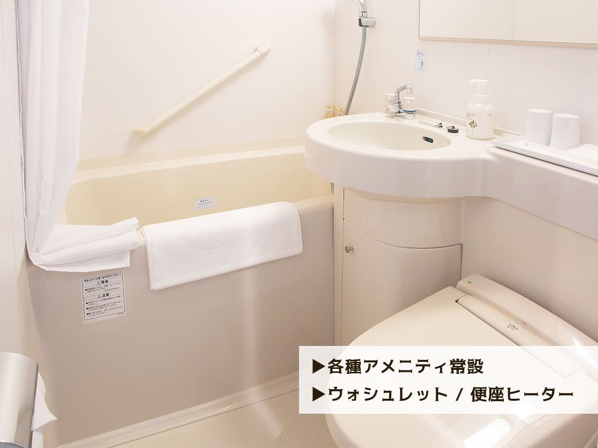 全室トイレ・バス・テレビ・冷暖房完備。女性にも安心な24時間フロント対応&全室オートロック。好立地でビジネスだけでなく、観光の拠点としても快適にご利用いただけます。