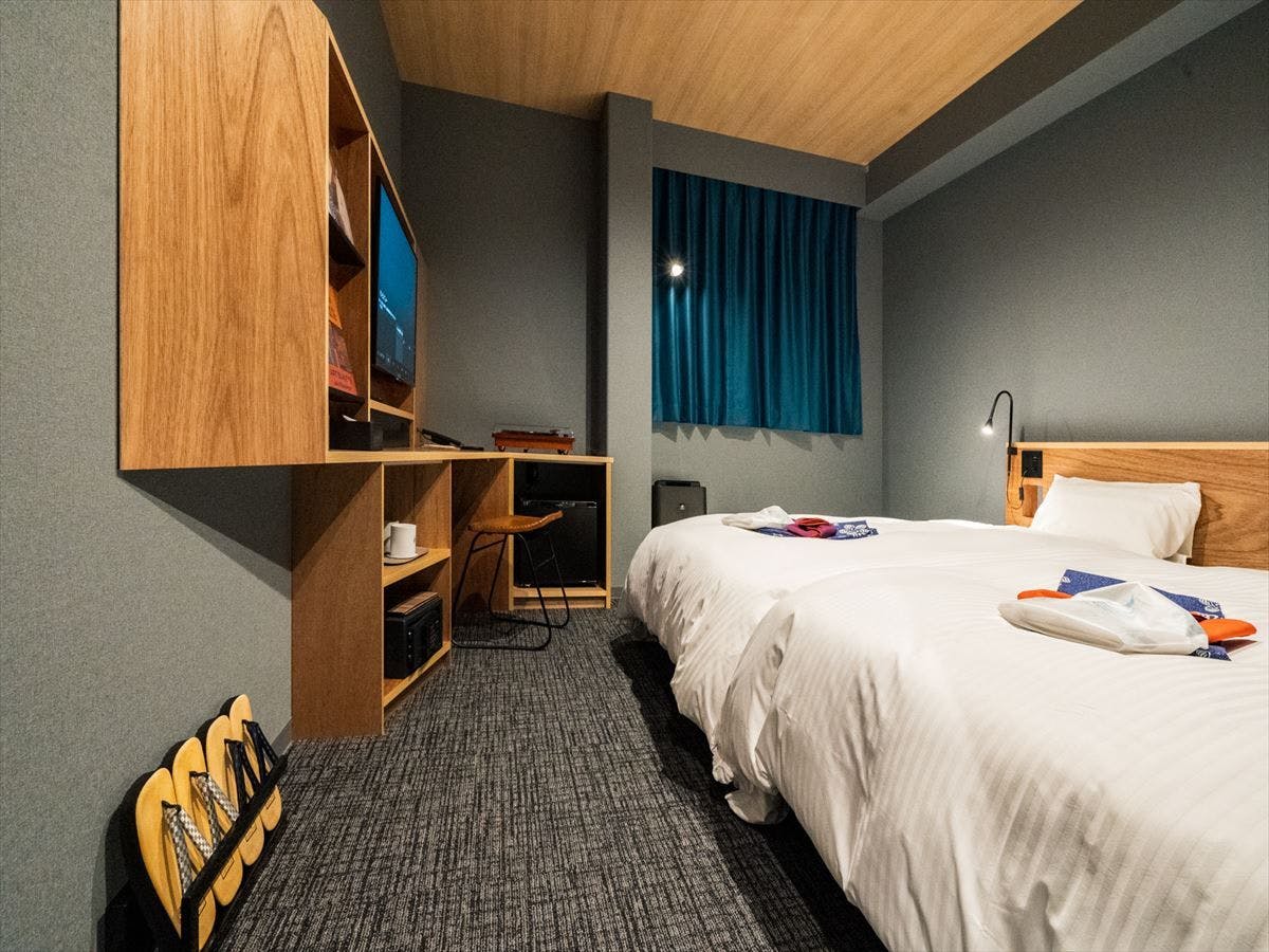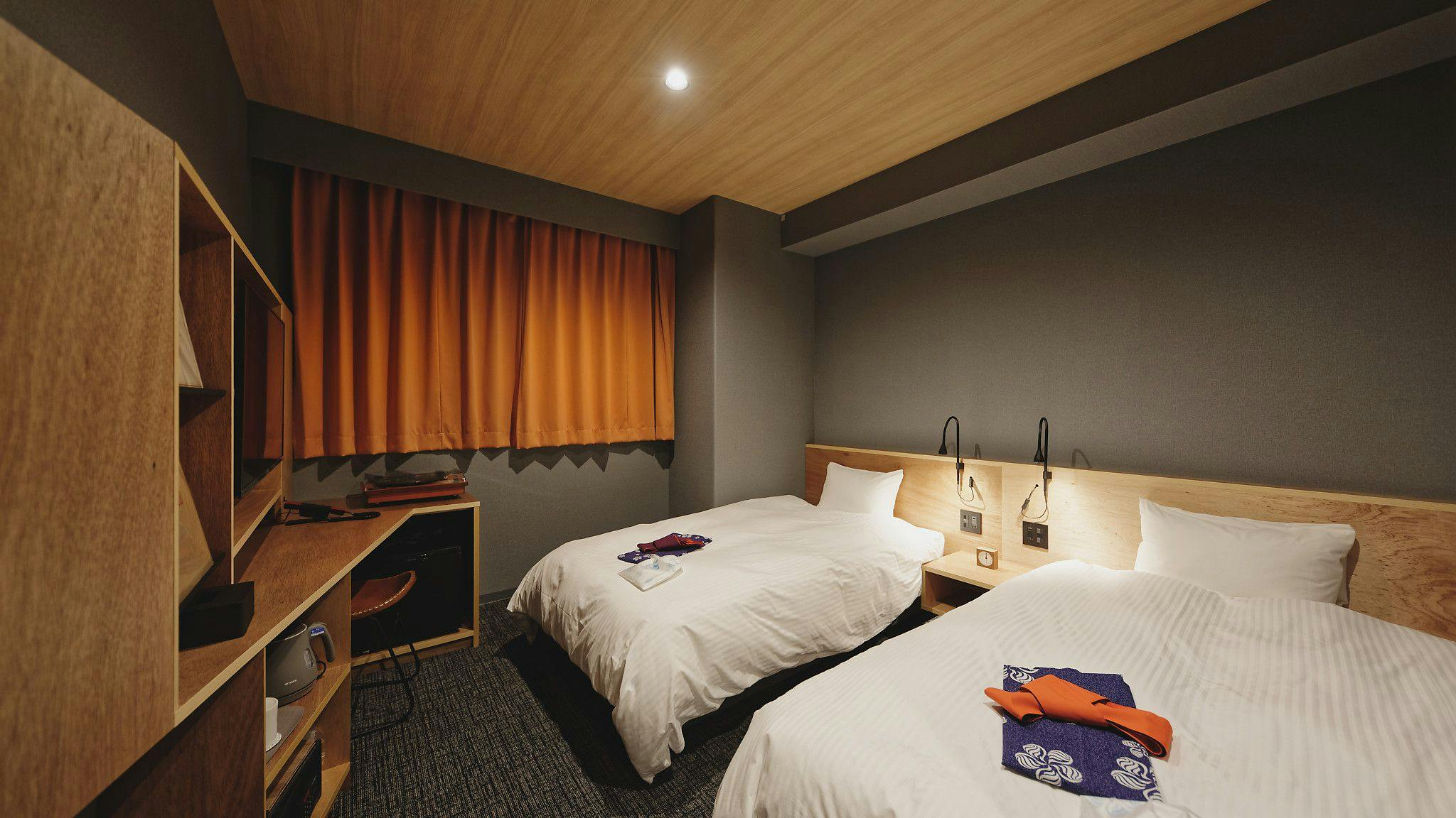 旅の思い出に花を咲かせて。充実のホテルライフをお約束するスタンダードな客室。110センチ幅のシモンズベッドを2台備えたツインルーム。(シャワーブースのみ、バスタブ無)