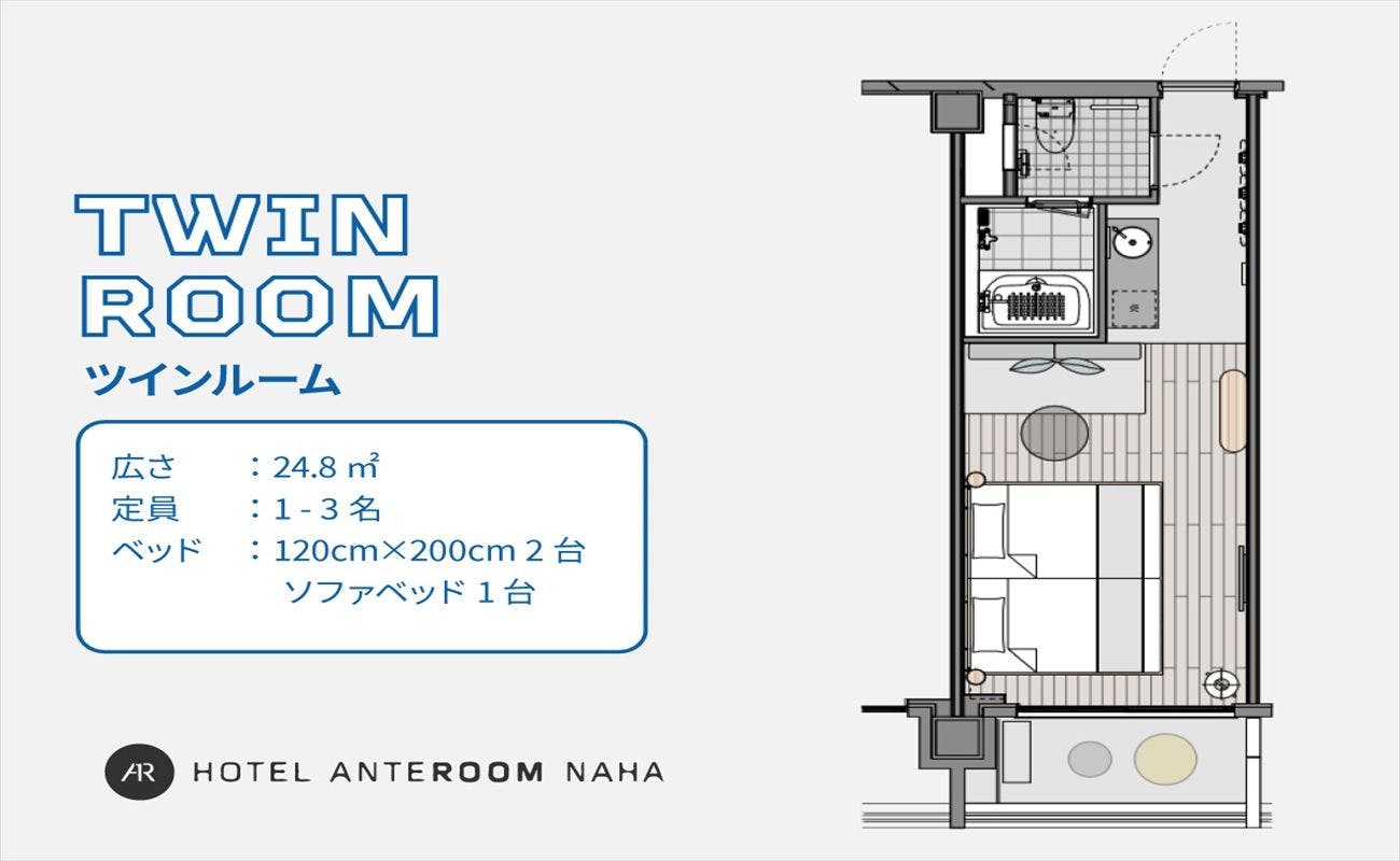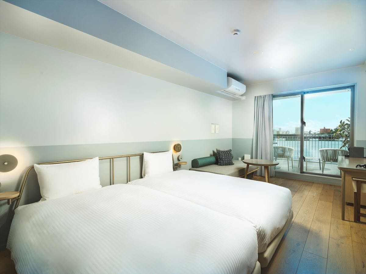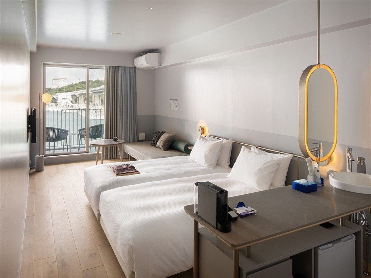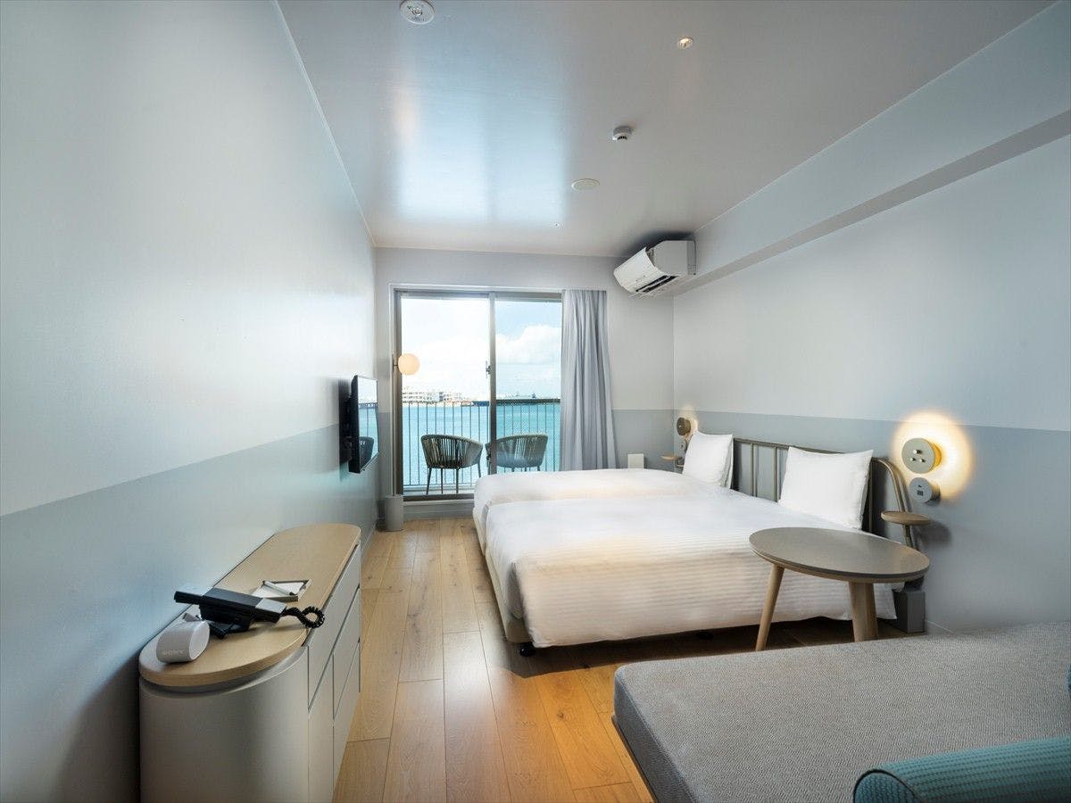 120cmのベットを2台ご用意したハーバーテラスツインルームは、3名までのご宿泊が可能。