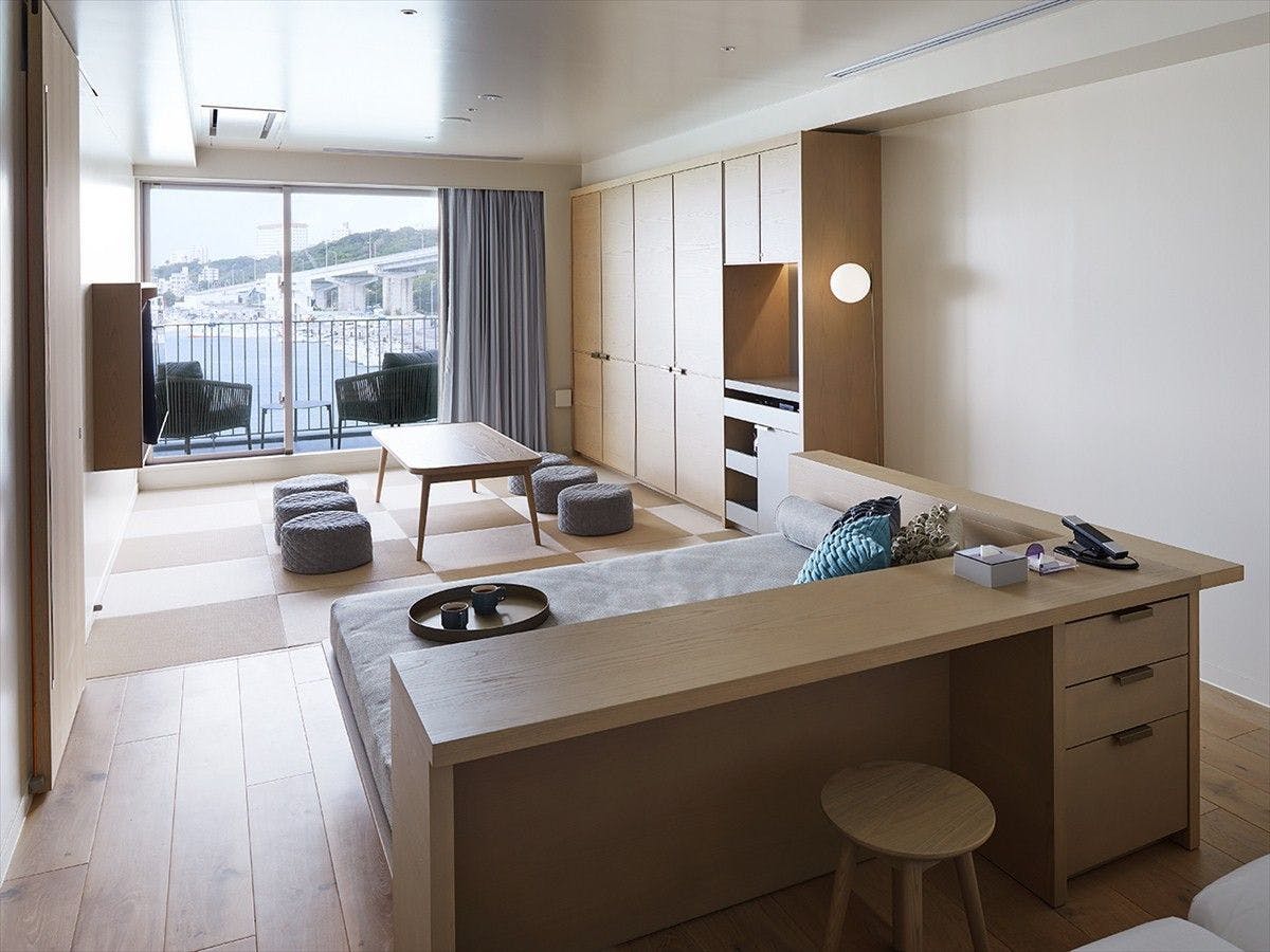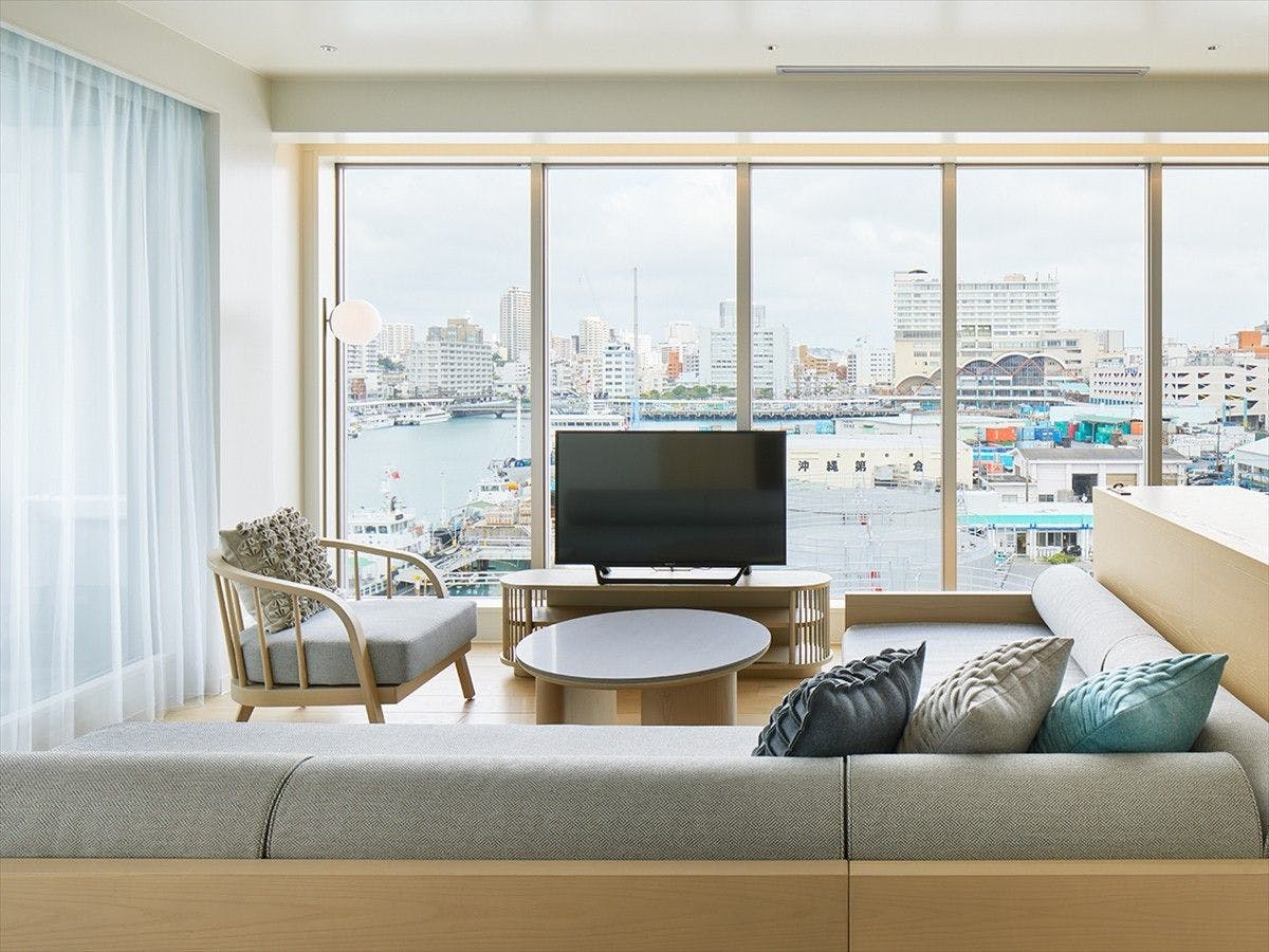 客室を入るとすぐに広がるワイドなビューが特徴のアンテルームスイート。