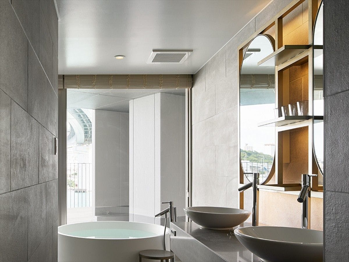 ゆったりとした水回りには海を臨めるバスタブがあり、