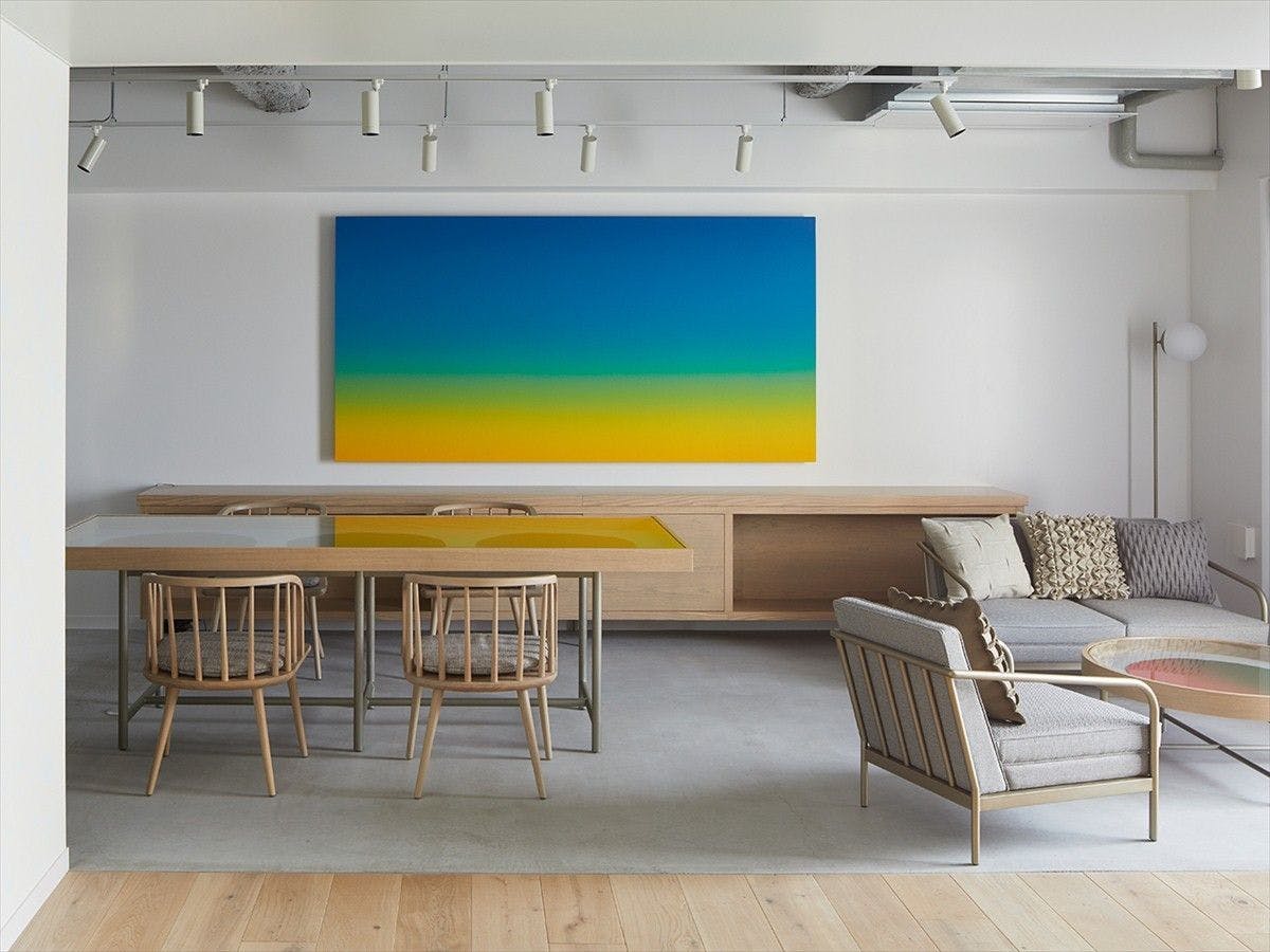 美術家・神谷徹氏のコンセプトルーム。色彩のグラデーションで表現される絵画、