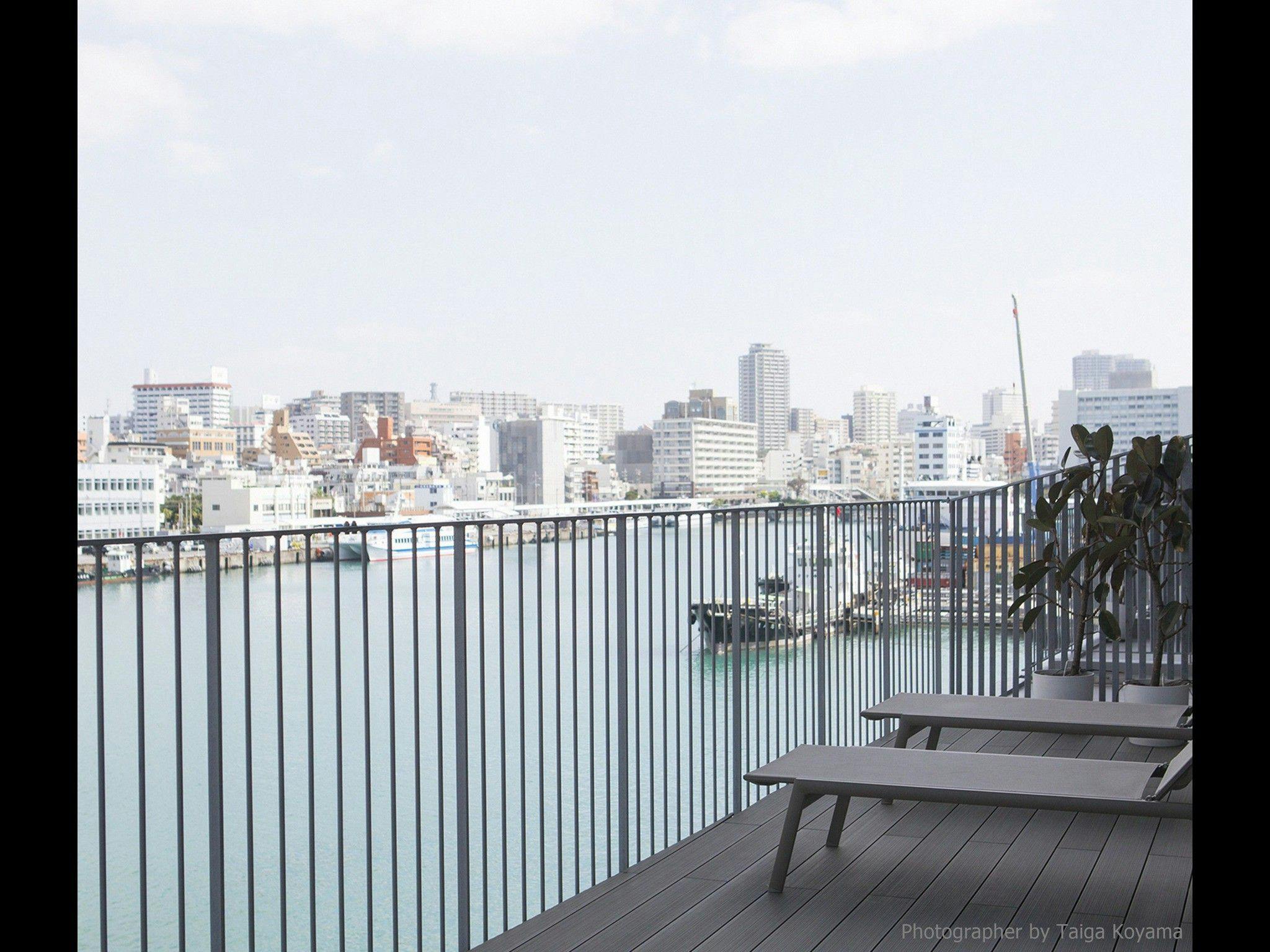 バルコニーからは、往来する船や離発着間近の旅客機など、