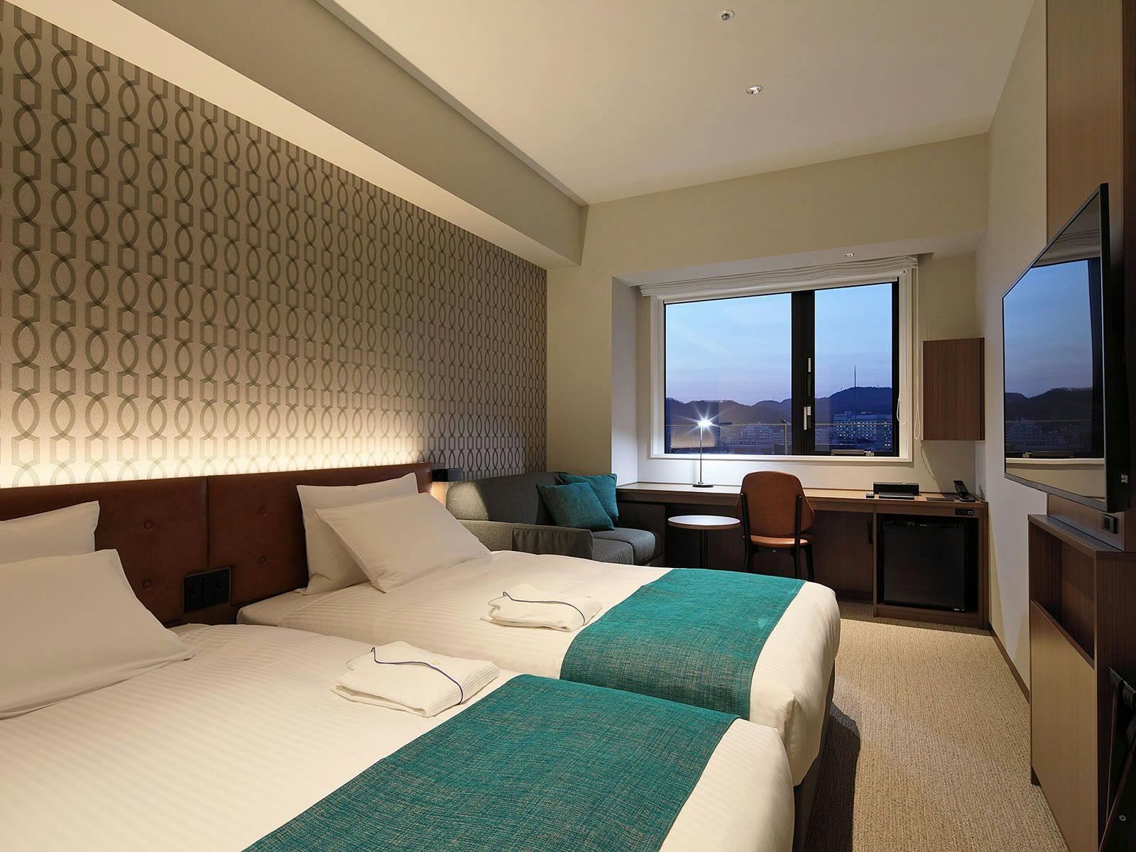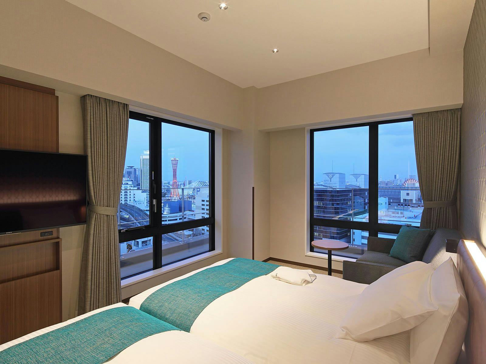 ライトアップされたポートタワーがご覧いただけます。120センチ幅のゆったりベッド/WIFI完備/全室禁煙※1Fに喫煙ブース有