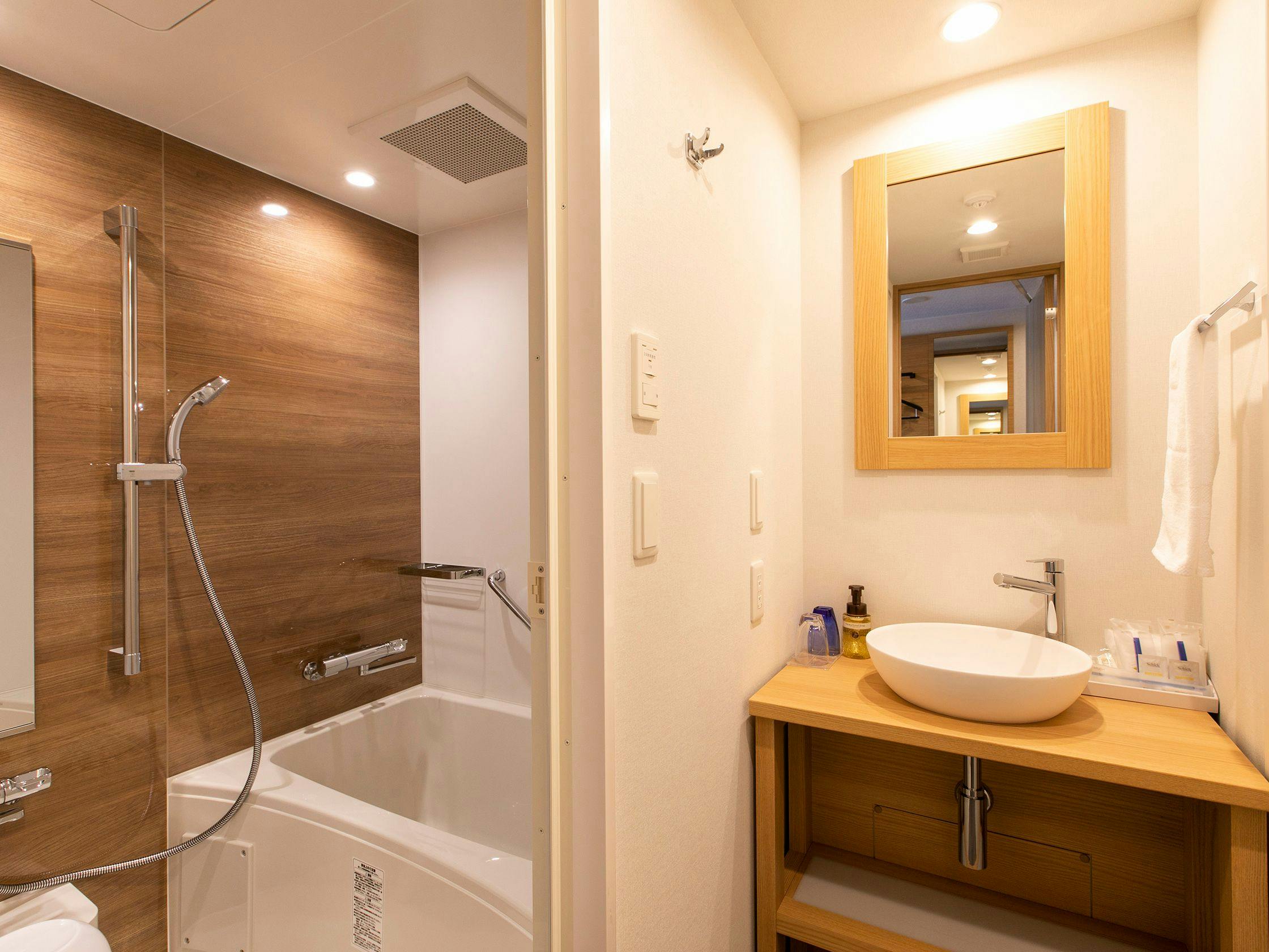 客室入口や浴室に段差のない客室(ユニバーサルルーム)となります。
