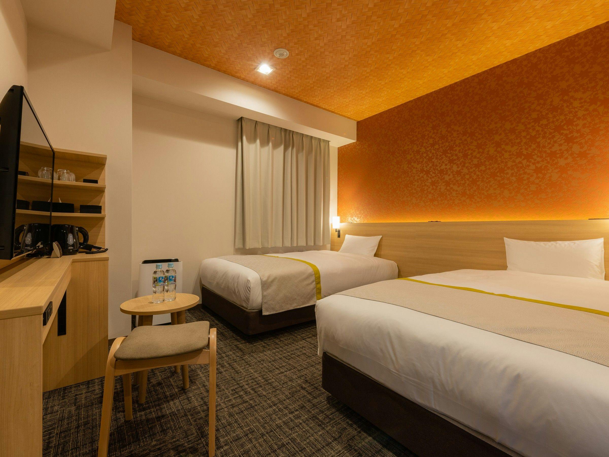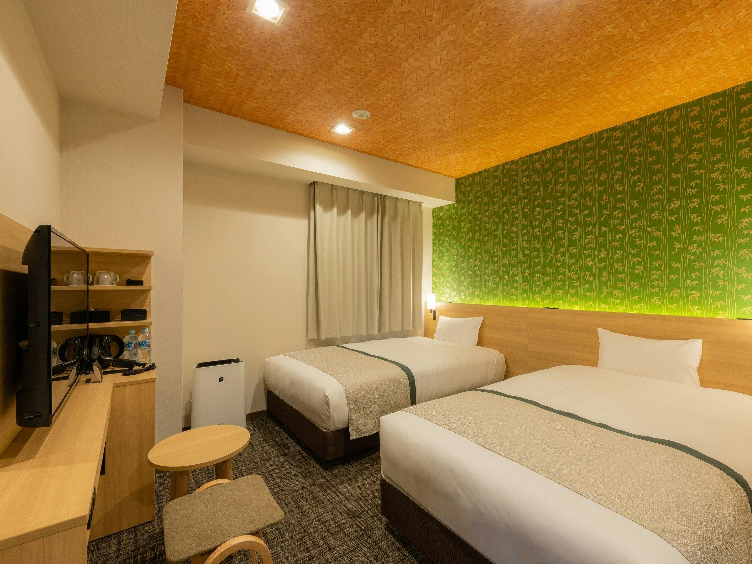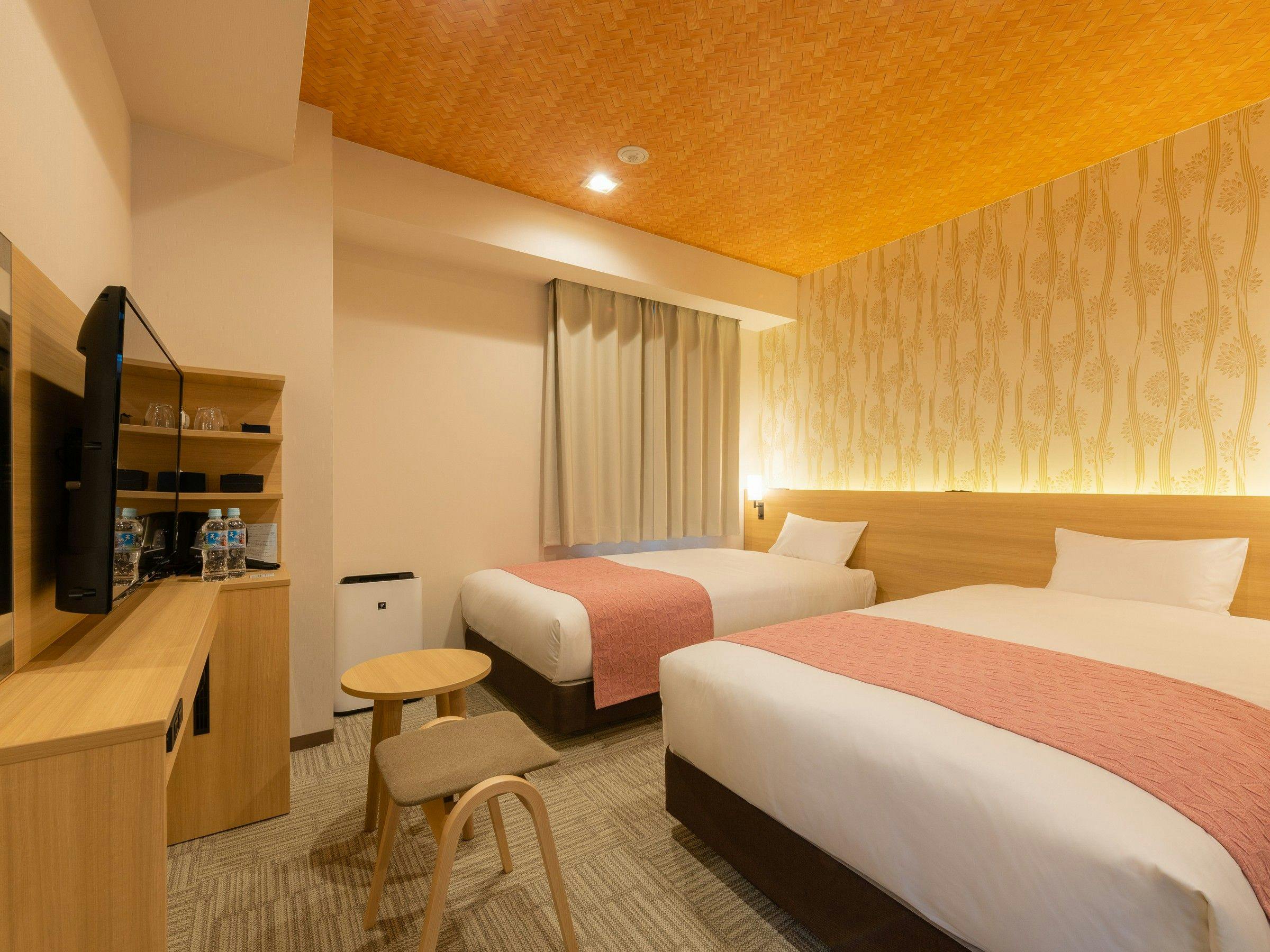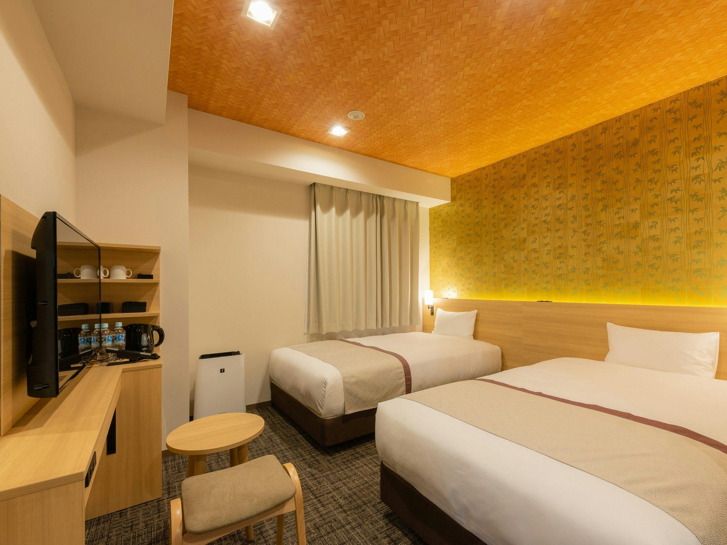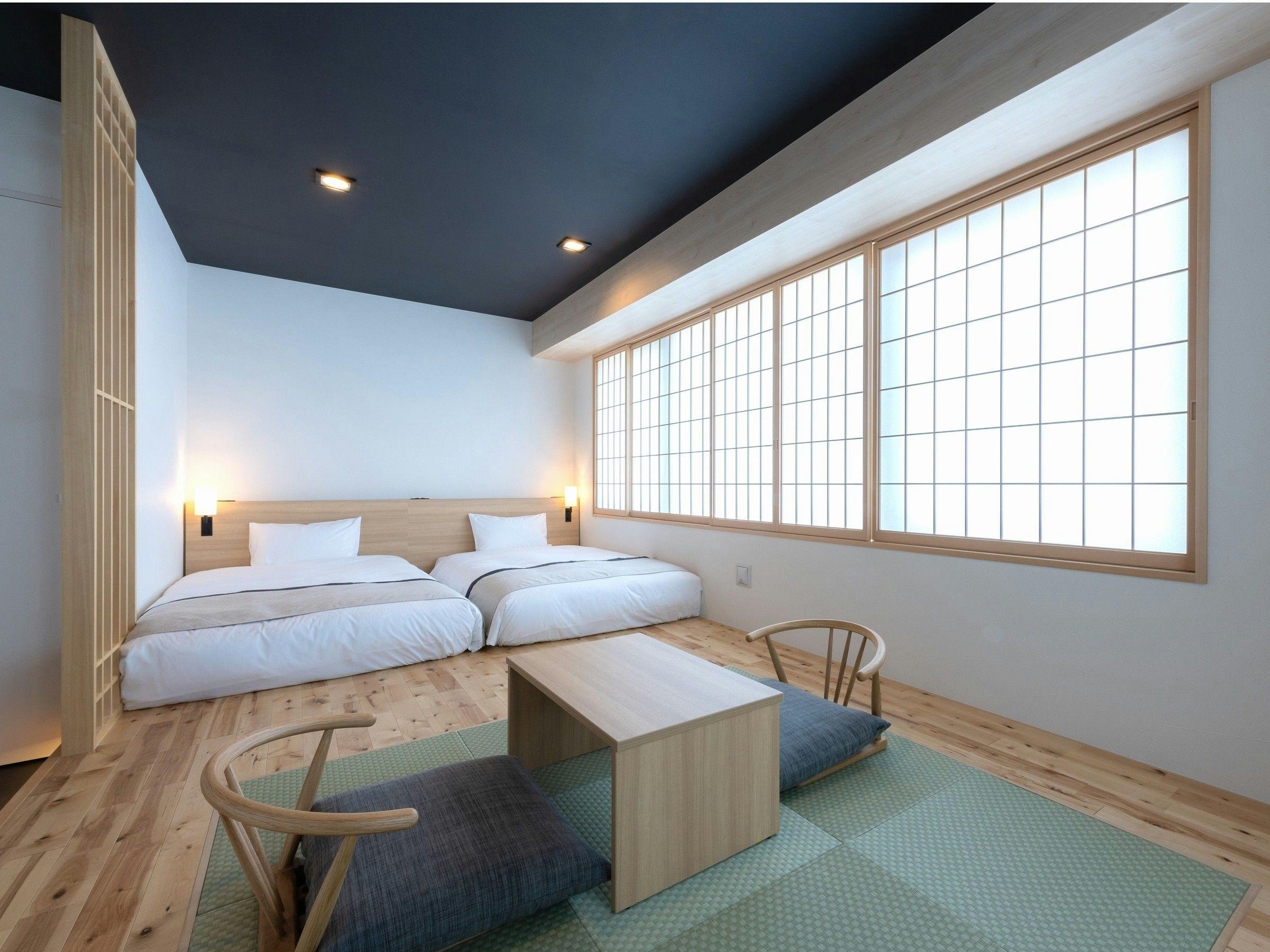 当館でスタンダードなツインルームです。コンパクトなお部屋には大きなデスクは置かず、ローテーブルとミニチェアを装備しました。お連れ様同士でリラックスしたホテルライフをお過ごしください。ベッドは世界中のラグジュアリーホテルで採用されている 「シモンズポケットコイルマットレス」使用で快適な睡眠をサポートいたします。