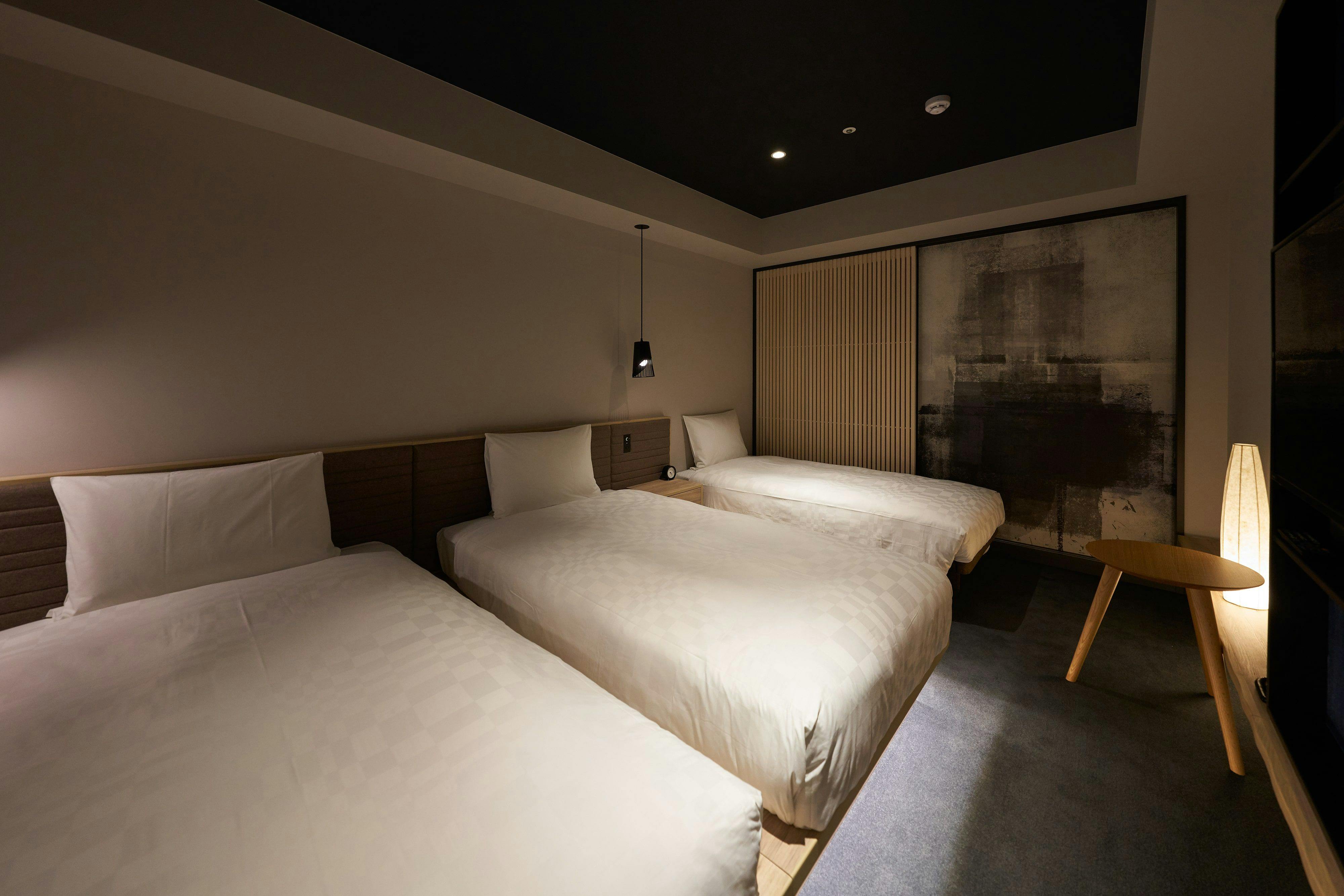3名利用時、常設ベッド2台の他ソファベッド1台でのご用意となります。