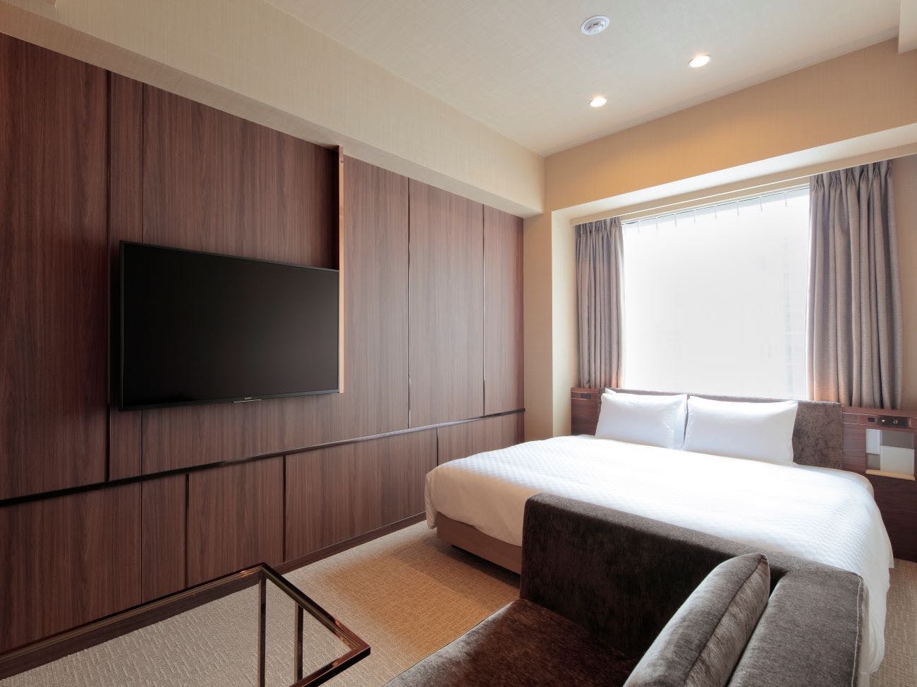 ■全室禁煙/■広さ:21平米/■ベッド幅:1,800mm/■客室設備:無料Wi-Fi、ミニデスク、テレビ、シモンズベッド1台、シャワーブース/■客室アメニティ:館内着(浴衣)・スリッパ、シャンプー、コンディショナー、ボディソープ、バスタオル、フェイスタオル、ドライヤー、電気ポット、マグカップ、金庫