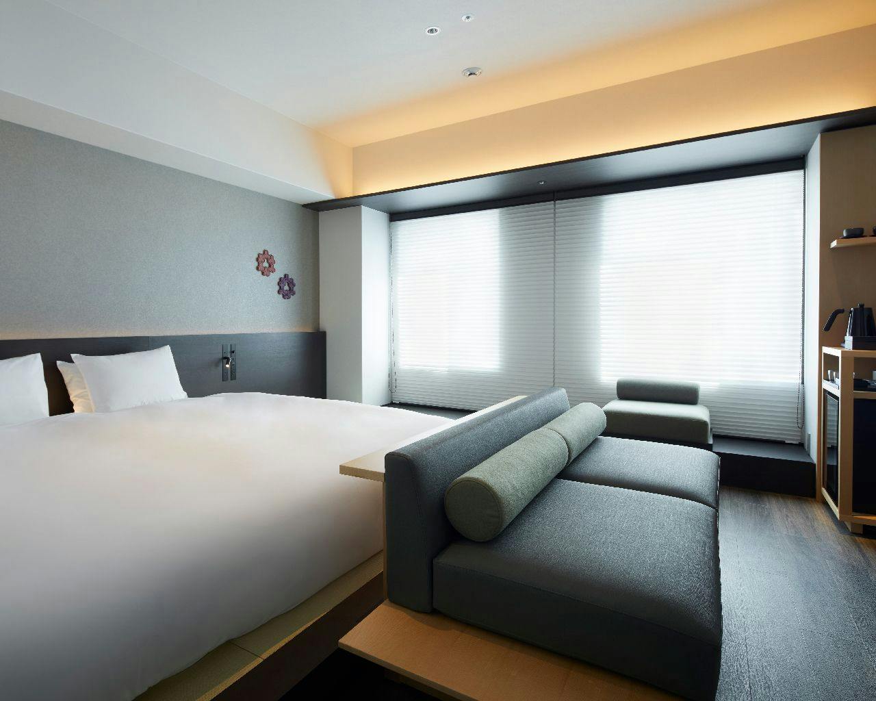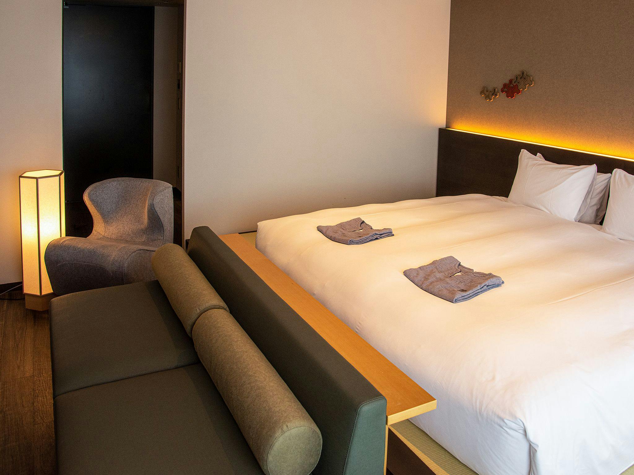 スーペリアーキング 1~2名 Wifi無料 禁煙茶邸の客間として、テレビ脇には“トコノマ”があり、鋸目加工を施した木パネルに、京都を取り囲む山や空が抽象的に表現された銅板アートが掛けられています。ゆったり広めのシャワーブースで、快適な浴び心地を追求したドイツ製の3段階切替シャワーヘッドを設置しております。全身にシャワーを浴びることで表面体温が高まり、よりぐっすり眠れる効果が期待できます。