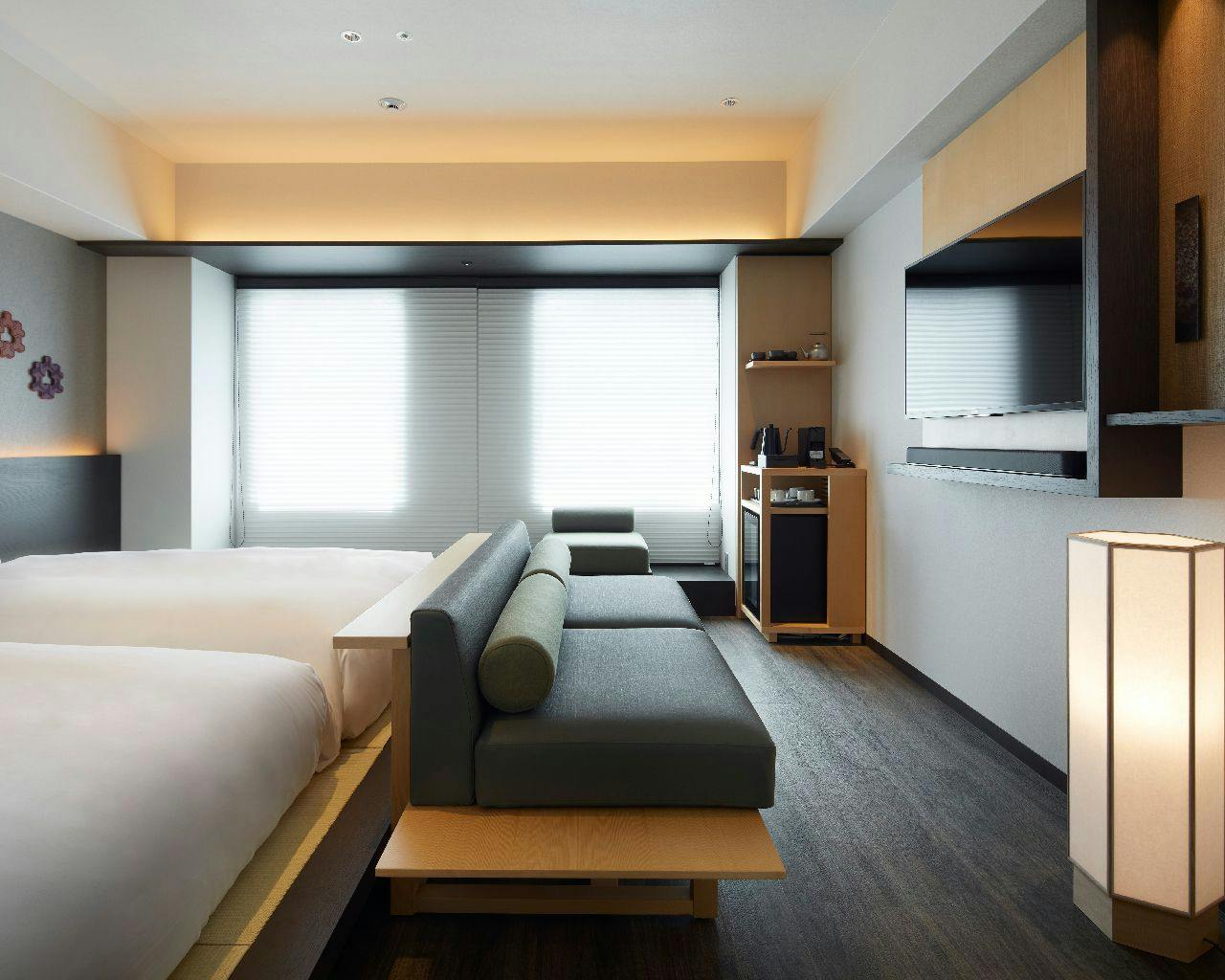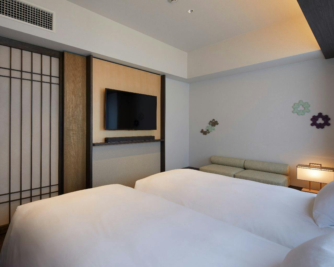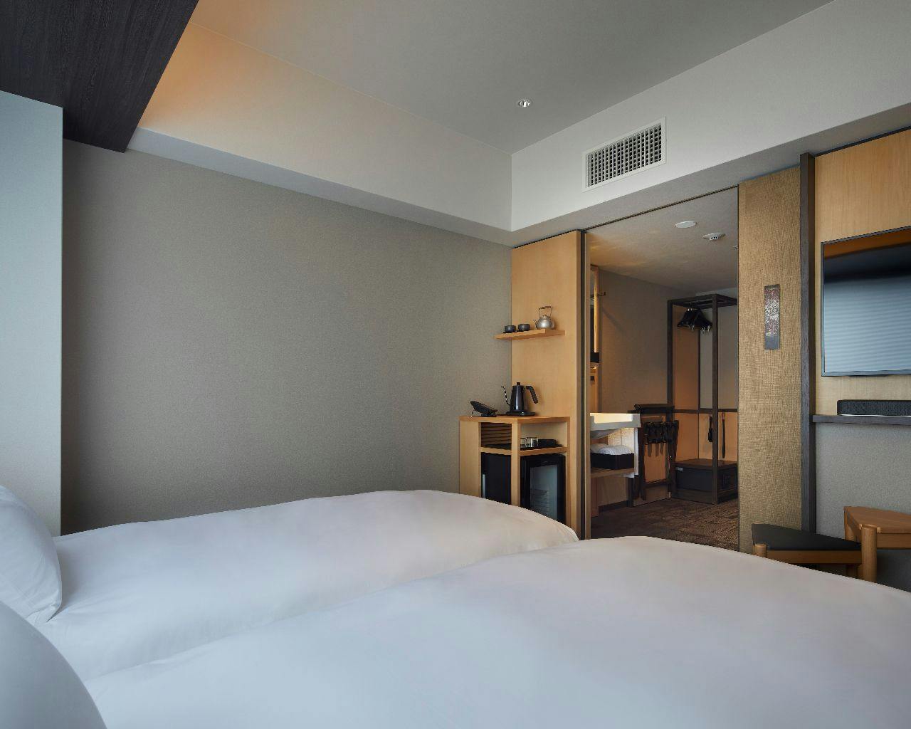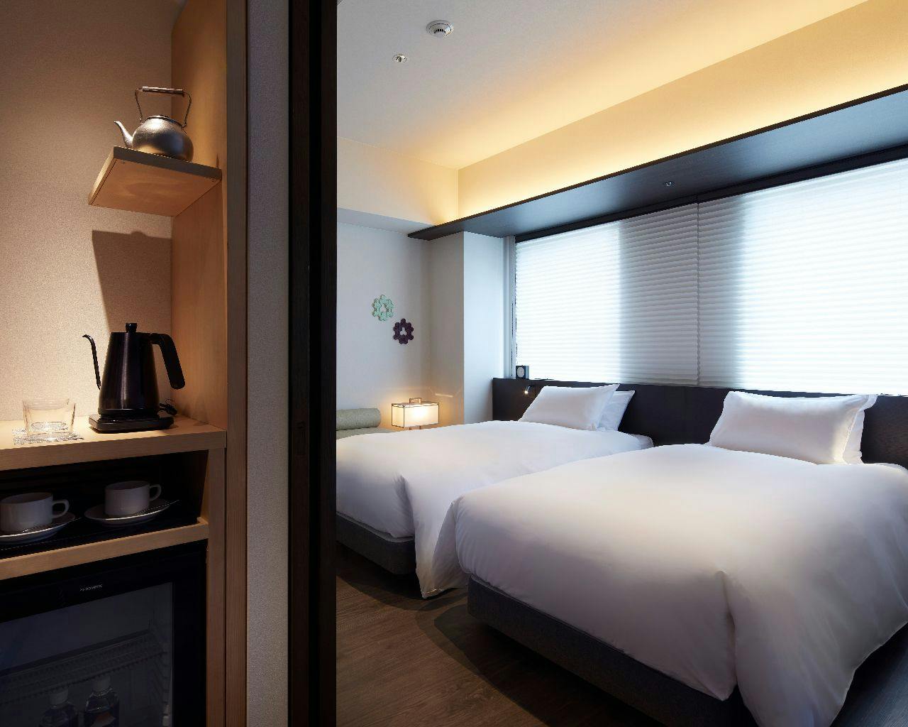 スーペリアーツイン 1~2名 Wifi無料 禁煙茶邸の客間として、テレビ脇には“トコノマ”があり、鋸目加工を施した木パネルに、京都を取り囲む山や空が抽象的に表現された銅板アートが掛けられています。ゆったり広めのシャワーブースで、快適な浴び心地を追求したドイツ製の3段階切替シャワーヘッドを設置しております。全身にシャワーを浴びることで表面体温が高まり、よりぐっすり眠れる効果が期待できます。