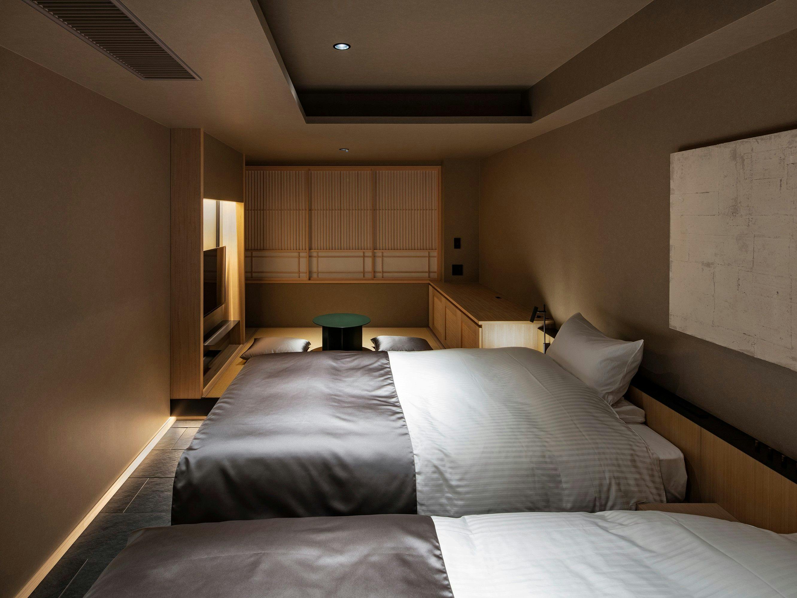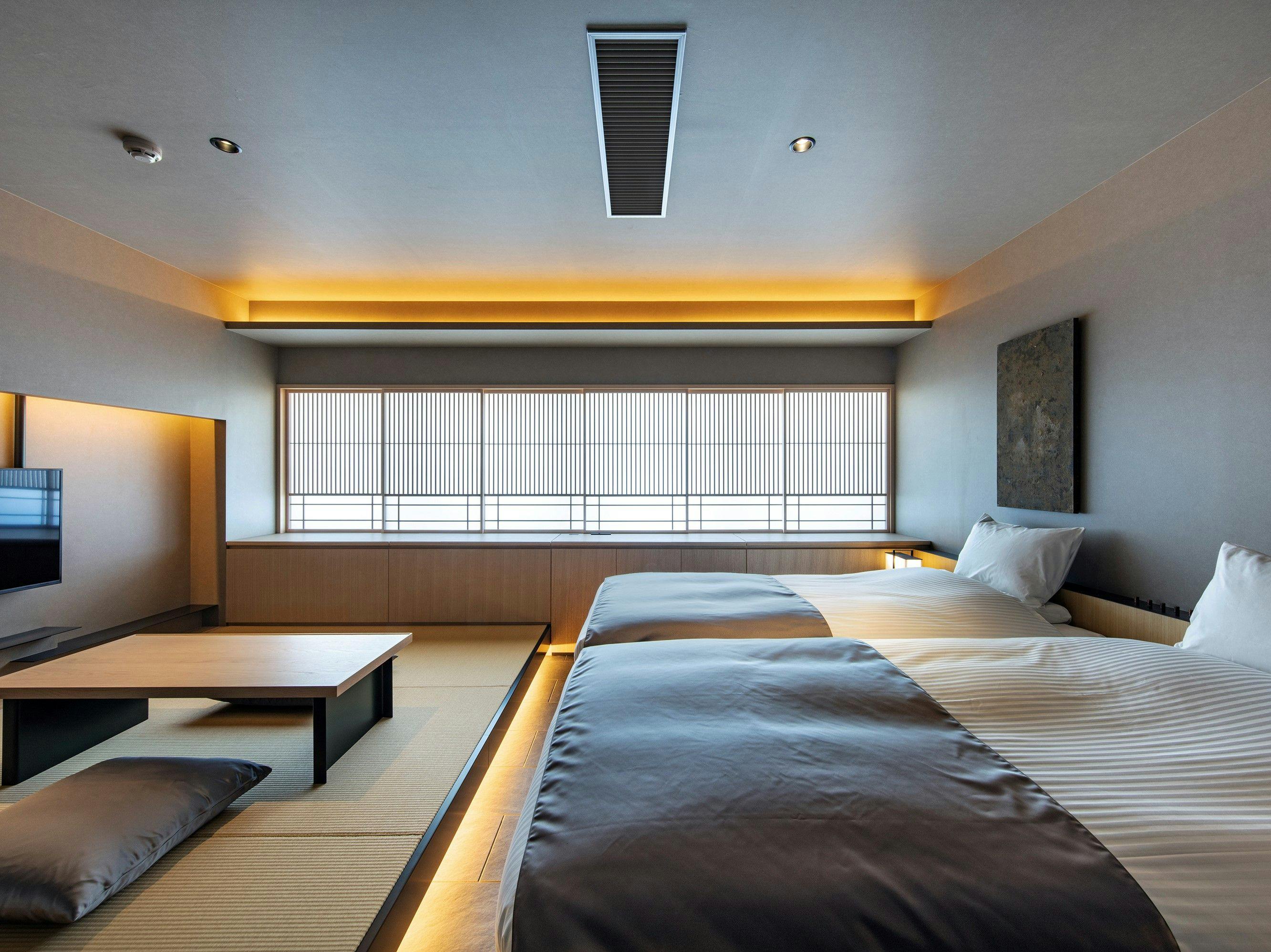 【客室情報】・35平米・シモンズ社製ベッド サイズ120センチ×2台 ※3名以上からは和布団 サイズ960センチ×1枚を追加・シャワーブース(バスタブなし)・トイレ独立・高速インターネットWi-Fi無料【客室備品】・オリジナルナイトウェア(セパレートタイプ)・マイナスイオンドライヤー・冷蔵庫・加湿機能付空気清浄機・43型液晶テレビ・シャンプー・コンディショナー・ボディソープ・電気ケトル・マルチ携帯充電器・消臭スプレー
