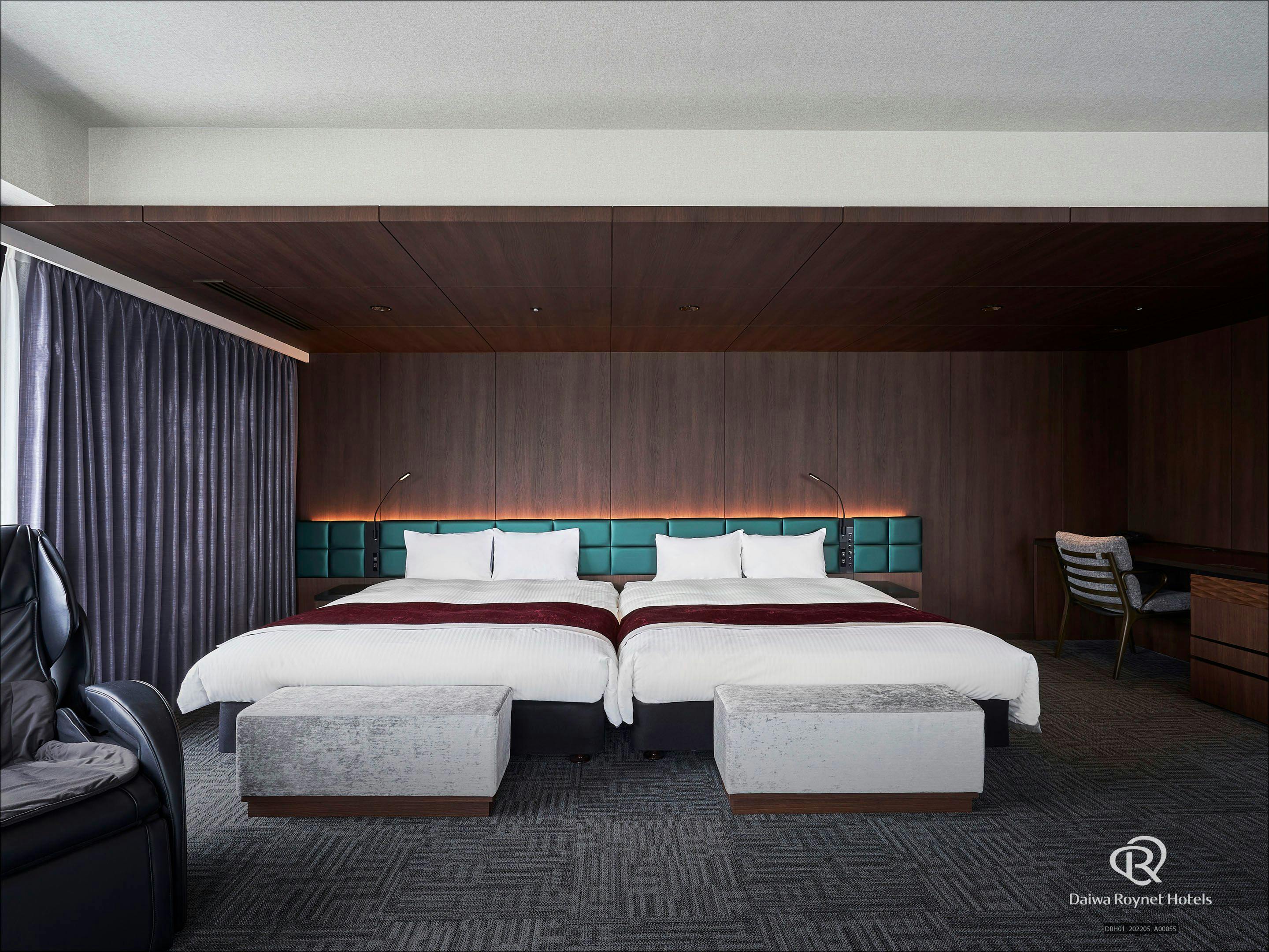 12階のお部屋。風呂・トイレ別。ベッド幅110cm×2台(3名・4名利用時は97cmベッド1~2台追加)。加湿空気清浄機付き。アプリ対応55型スマートTVをご用意しております。各種サブスクリプションサービスもお楽しみいただけます。※お客様ご自身のアカウントが必要となります。