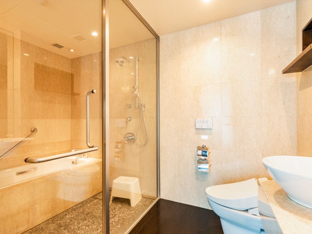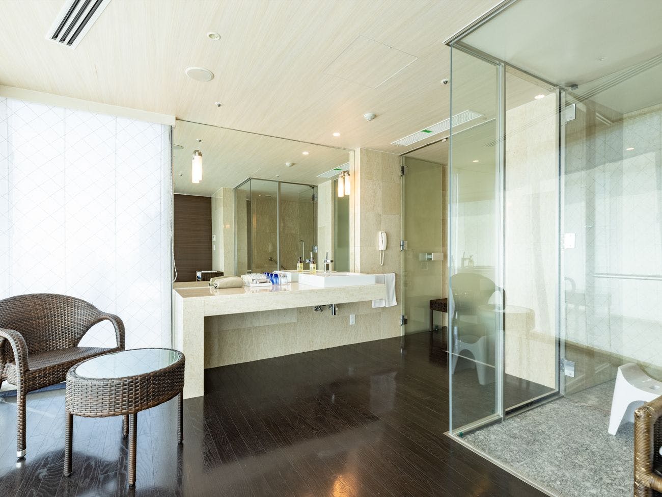一面のガラスウォールにより明るく開放感あふれる客室です。