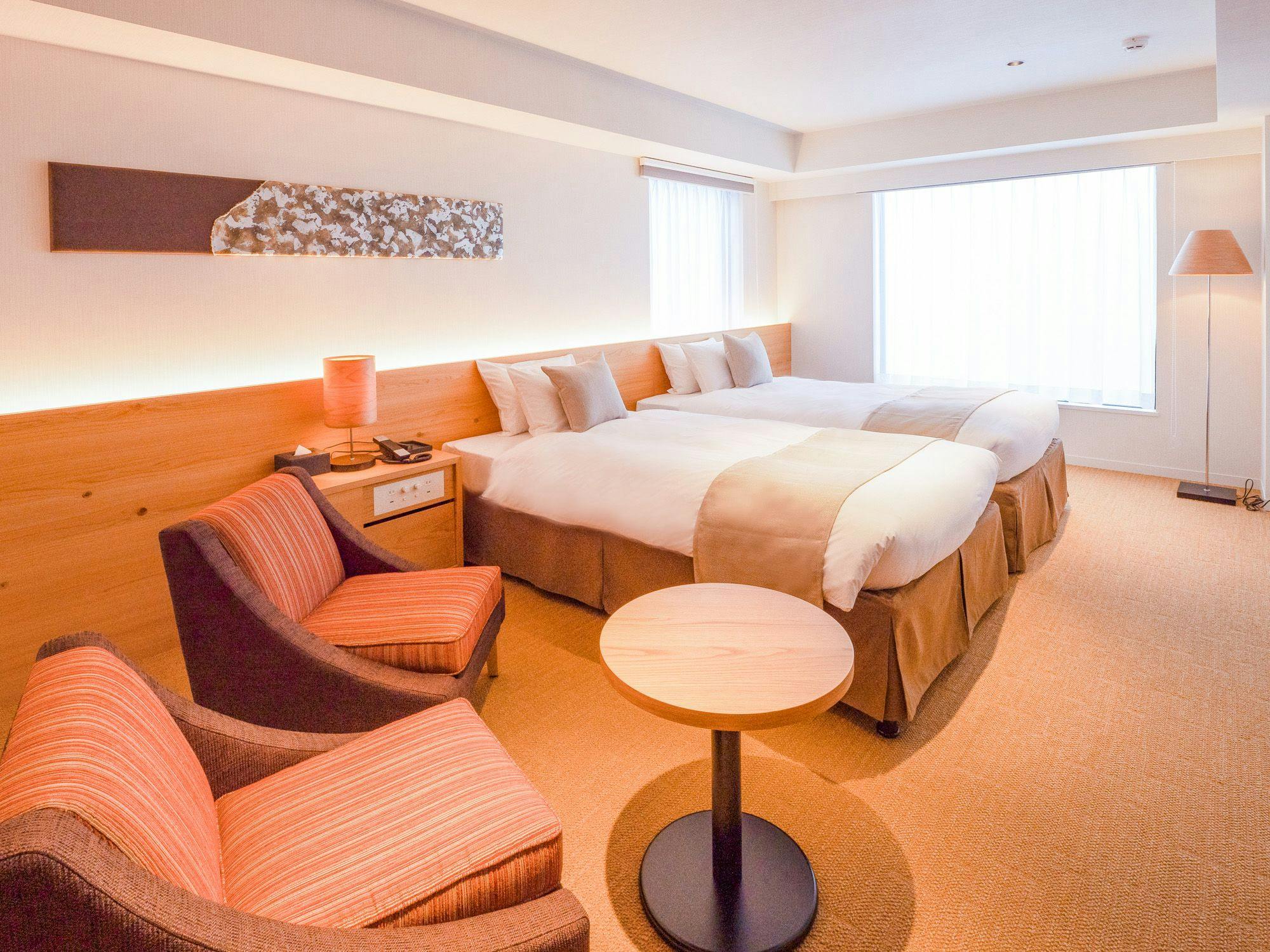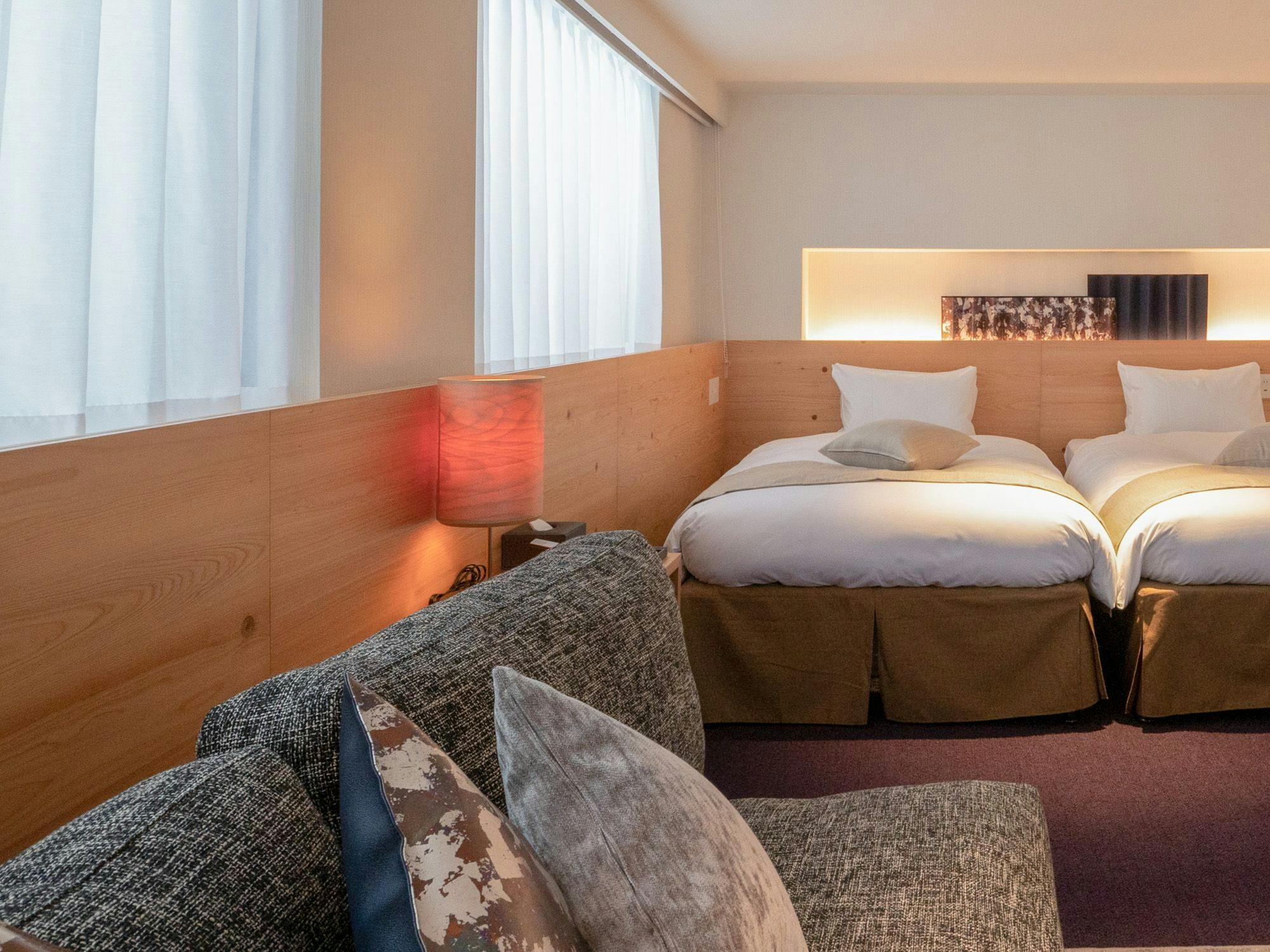 お誕生日や記念日など大切な方との時間を心地よく過ごせるデラックスツイン。木の温もりを感じる、落ち着いた配色で柔らかな雰囲気に満ちています。スタイリッシュなシャワールームとハイクオリティーなツインベッドが置かれた、開放感ある32平米のお部屋です。
