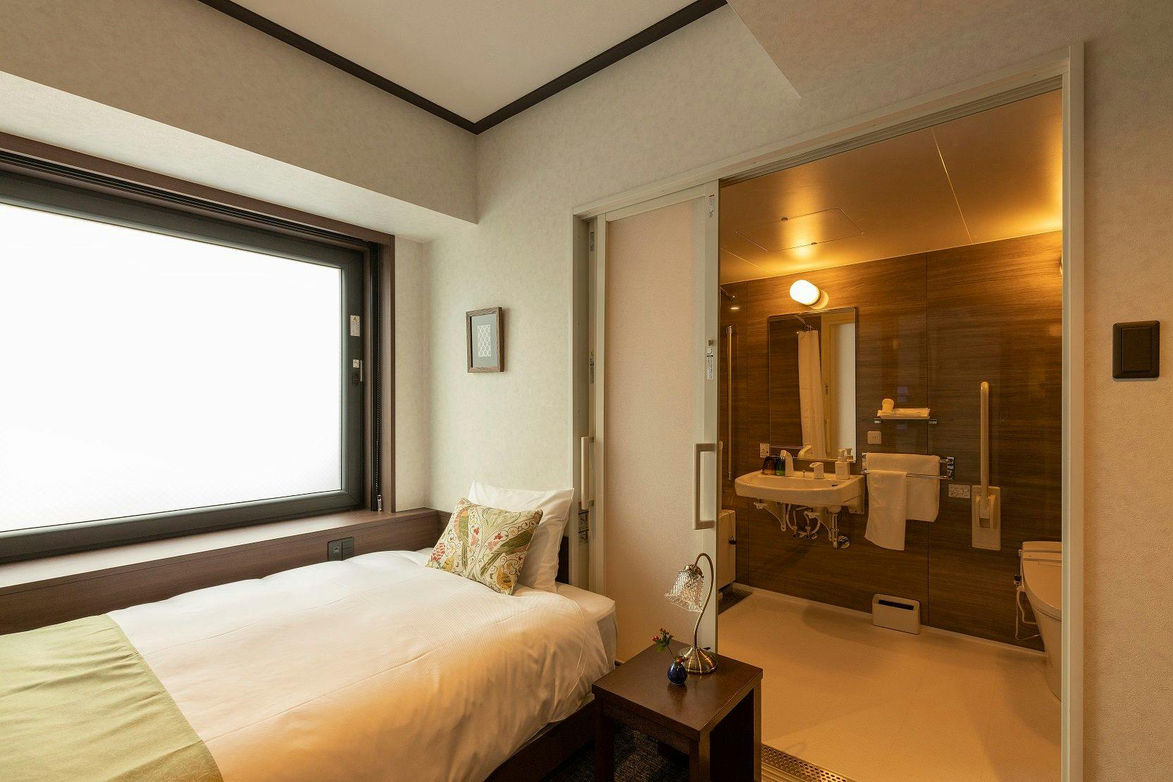 大正ロマンをテーマに、色使いや質感にこだわったレトロモダンな客室です。車椅子をご利用のお客様、ご高齢のお客様など全てのお客様に安全で快適なホテルライフをお過ごしいただけます。幅120cmのシモンズ社製ダブルベッドでゆっくりお休みいただけます。