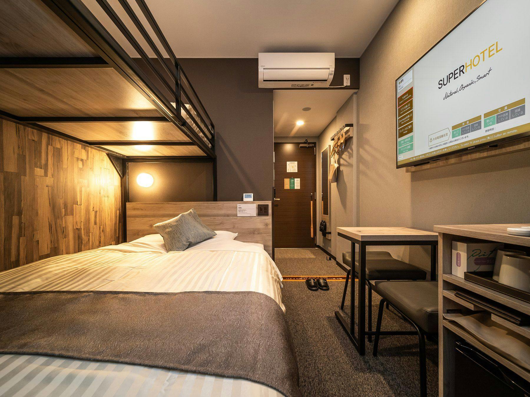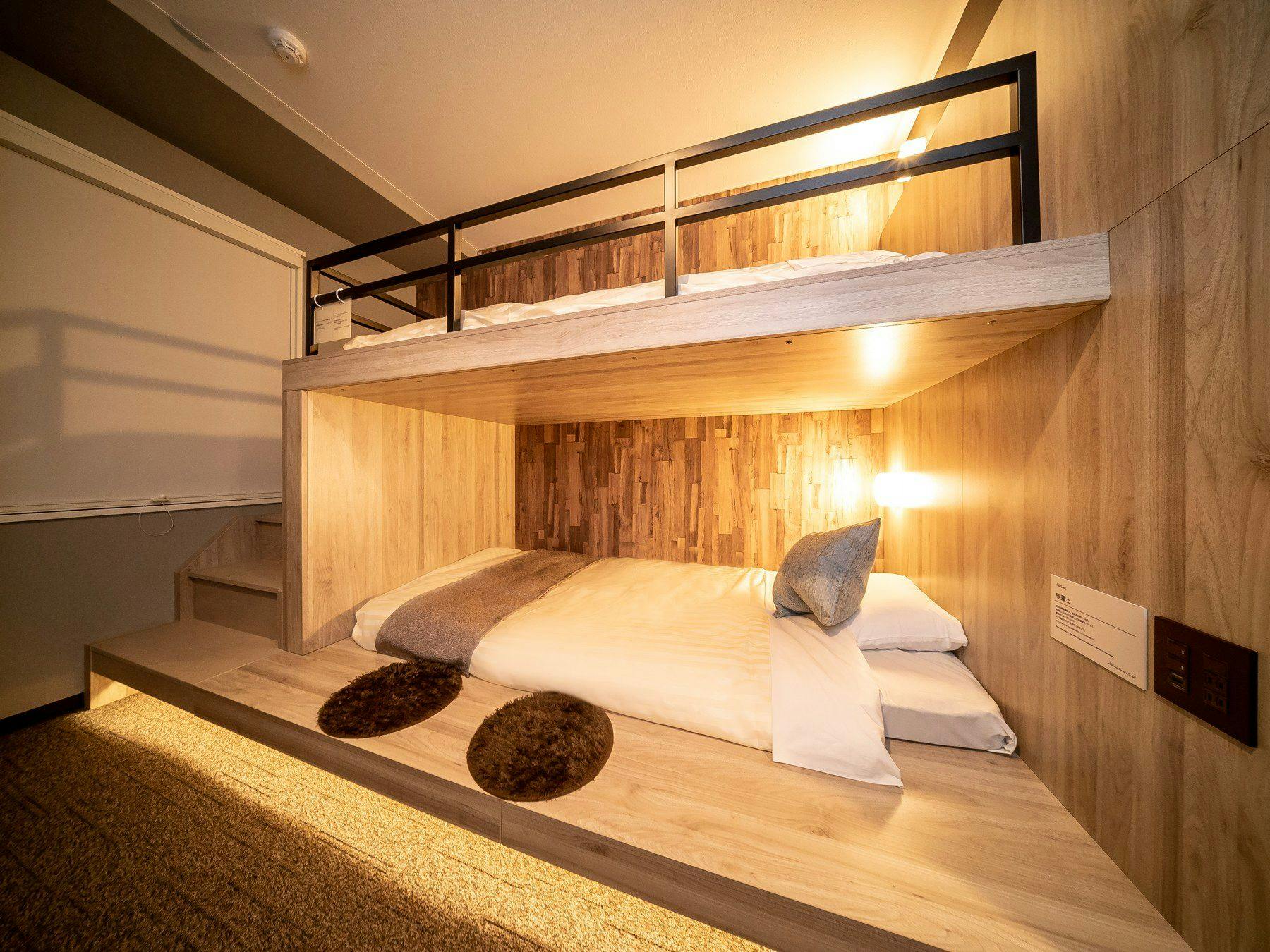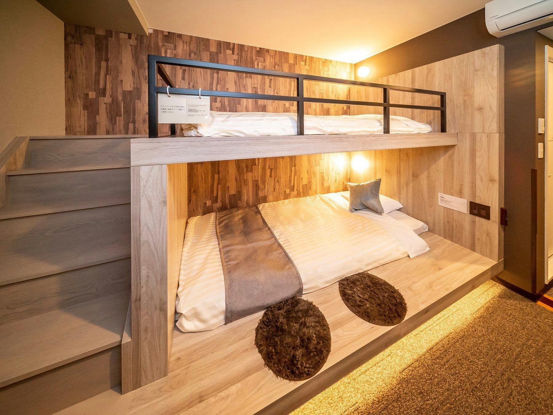 ダブルサイズのワイドベッドとお子様に人気のロフトベッド付の【ファミリールーム】です。ご家族にお勧めです。