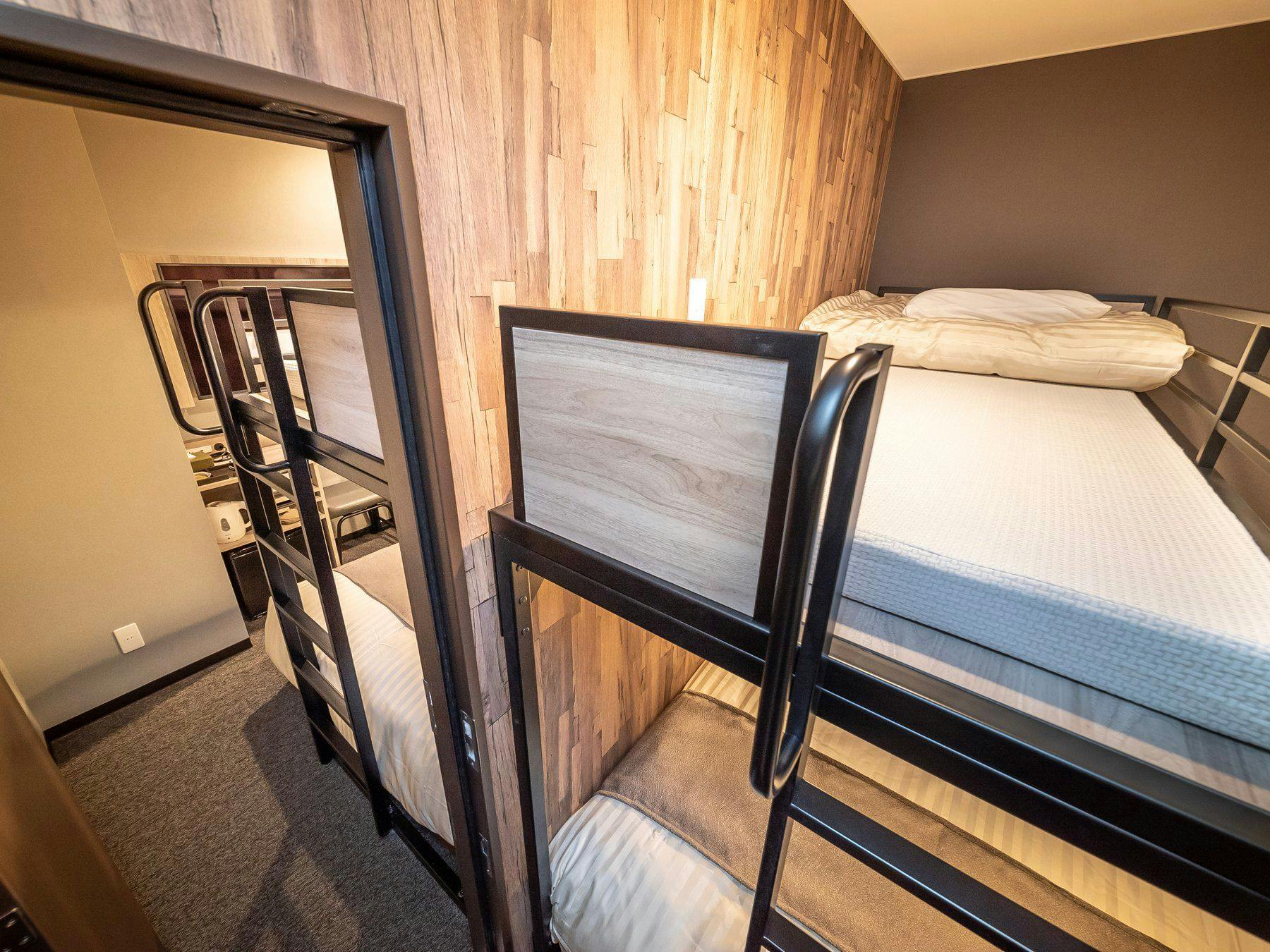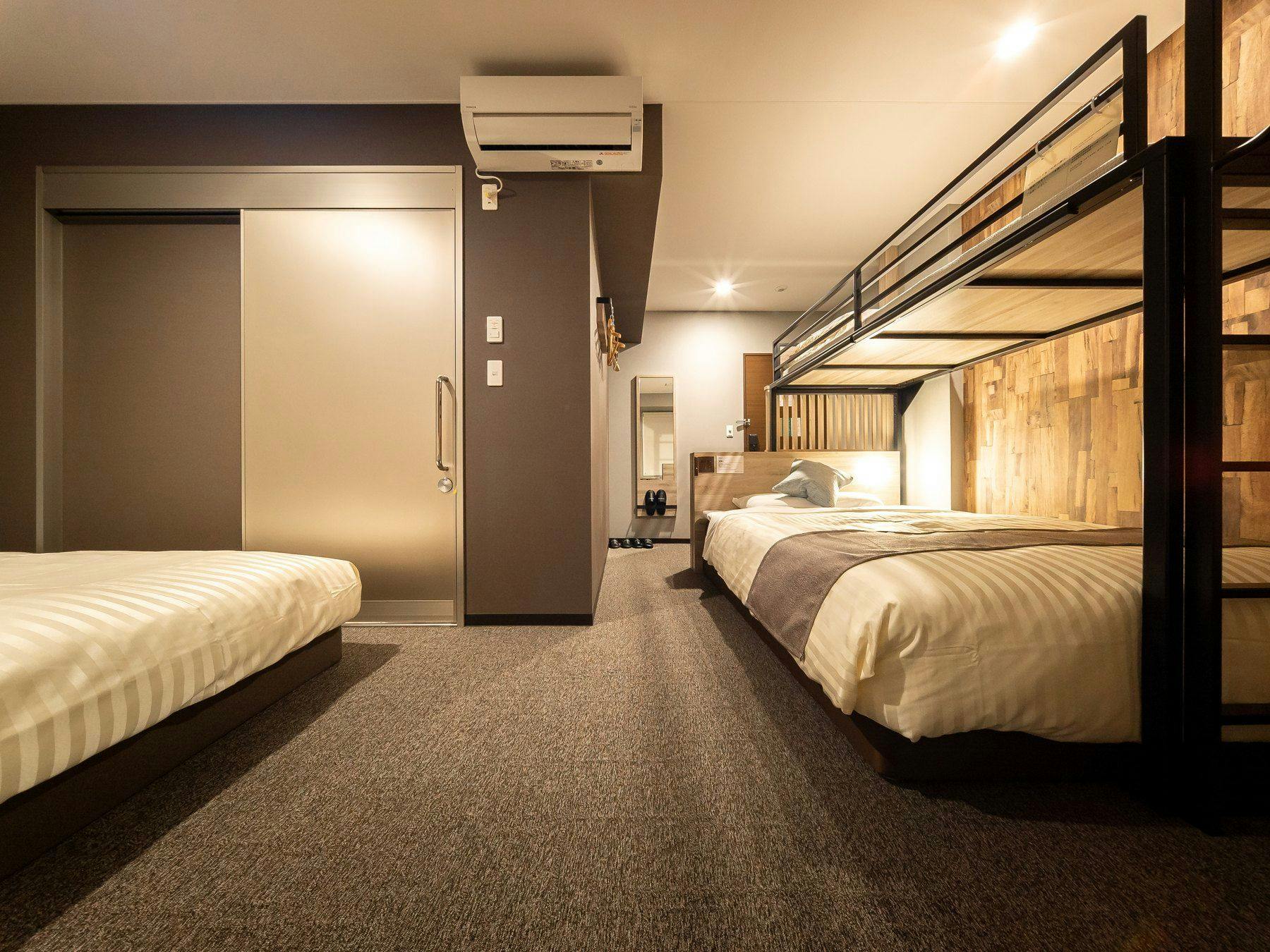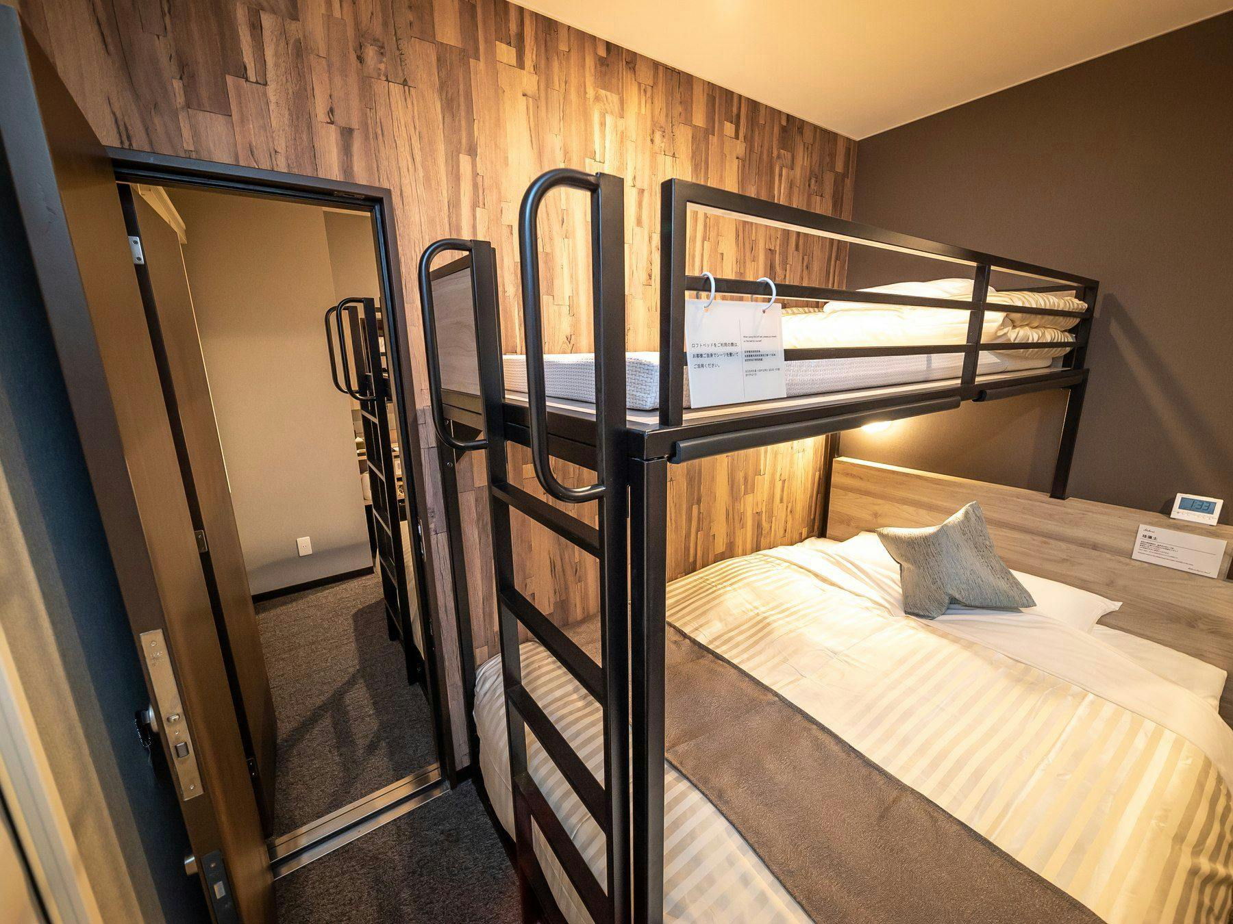 ダブルサイズベッドとロフトベッド付のスーパールームが2部屋繋がった【ファミリーコネクトルーム】です。