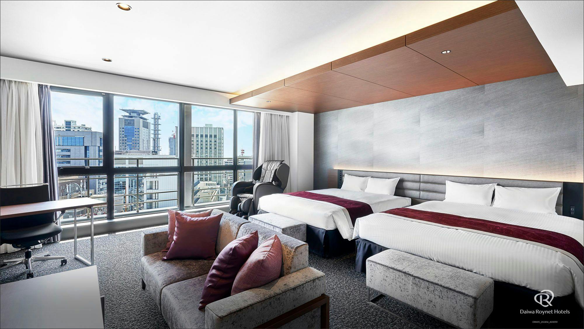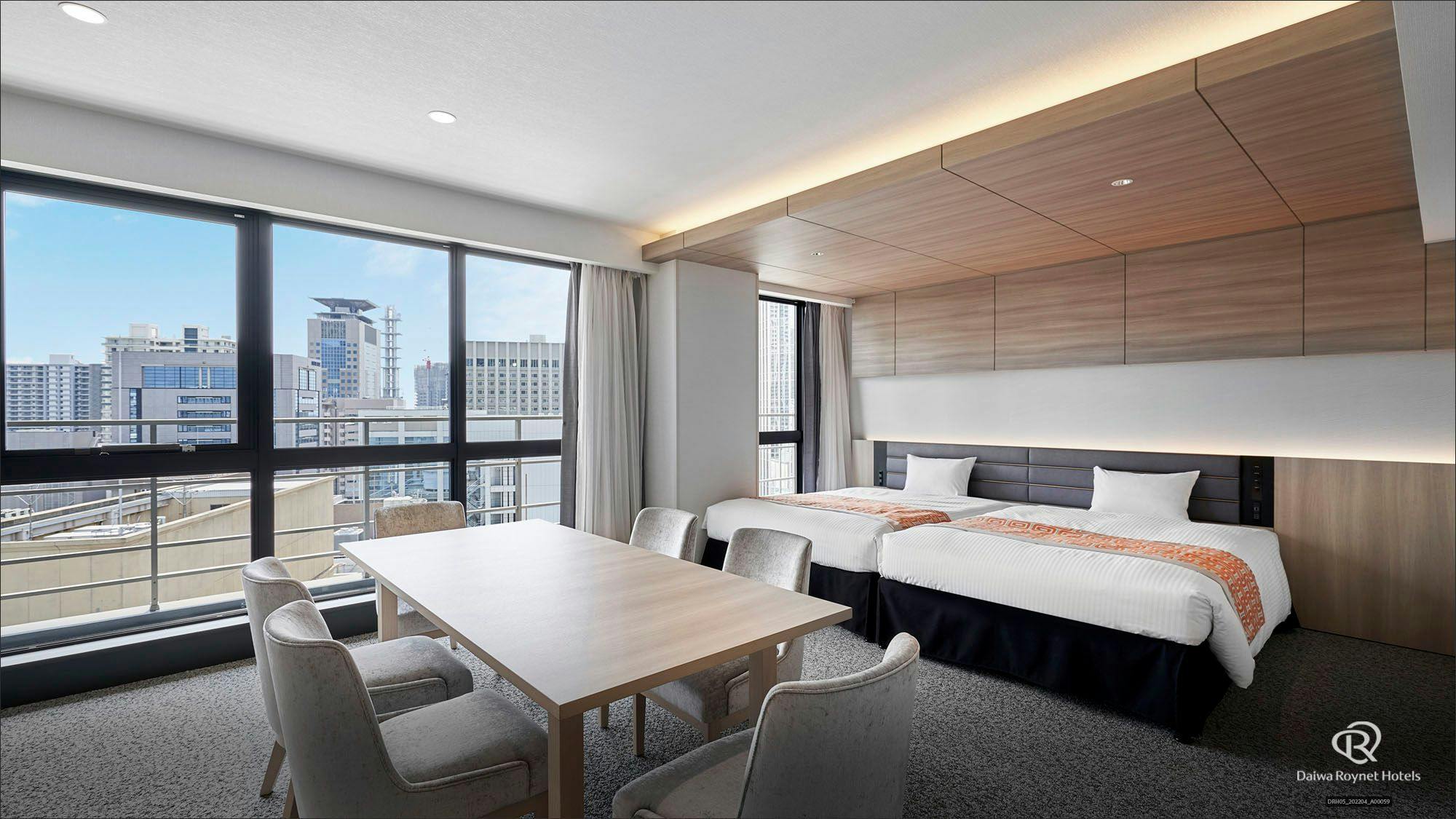 ・110cm幅ベッドx2台・セパレート式バスルーム・49型液晶TV・加湿空気清浄機・洗浄機能付トイレ・フリーWi-Fi・ベビーベッド設置可