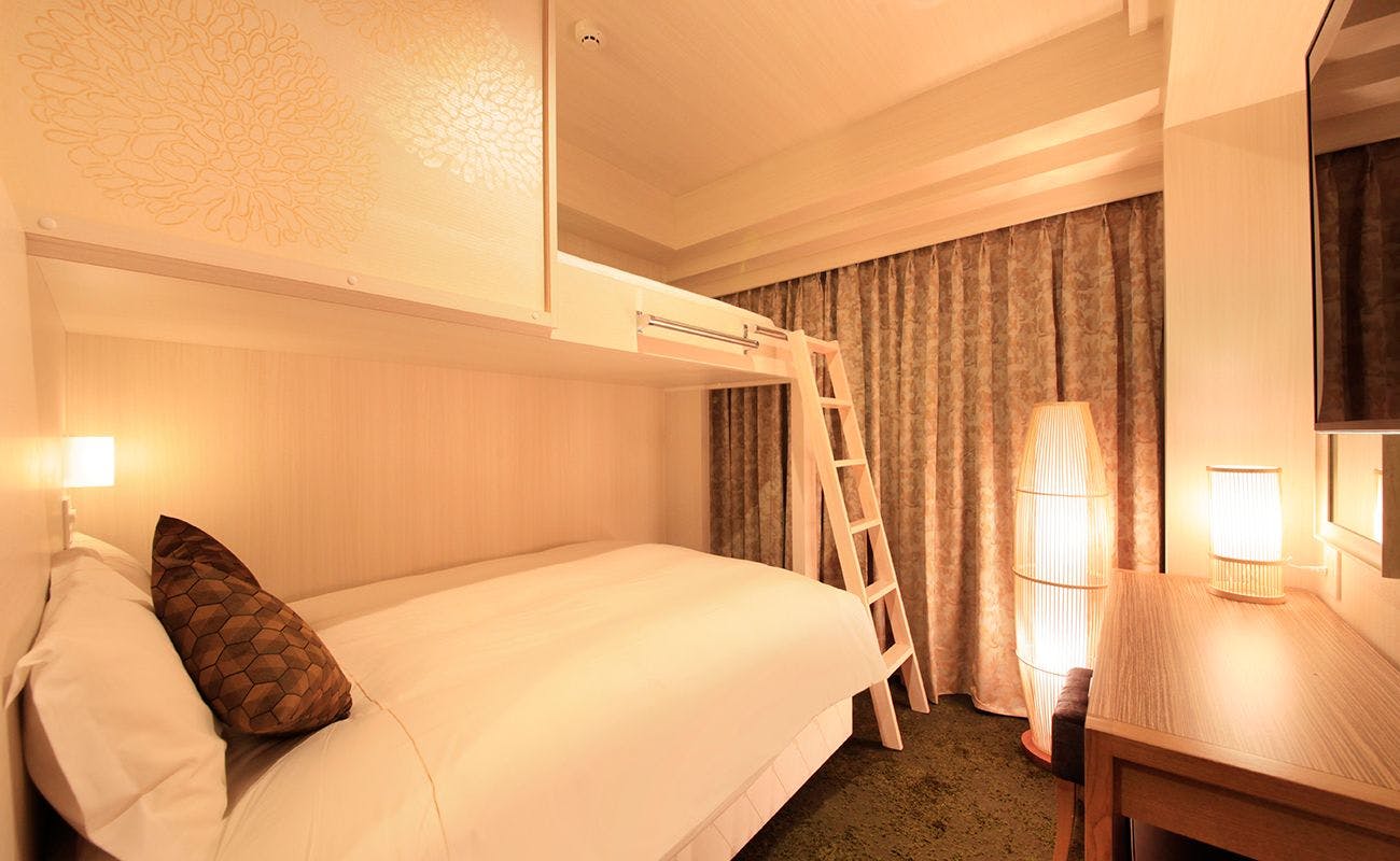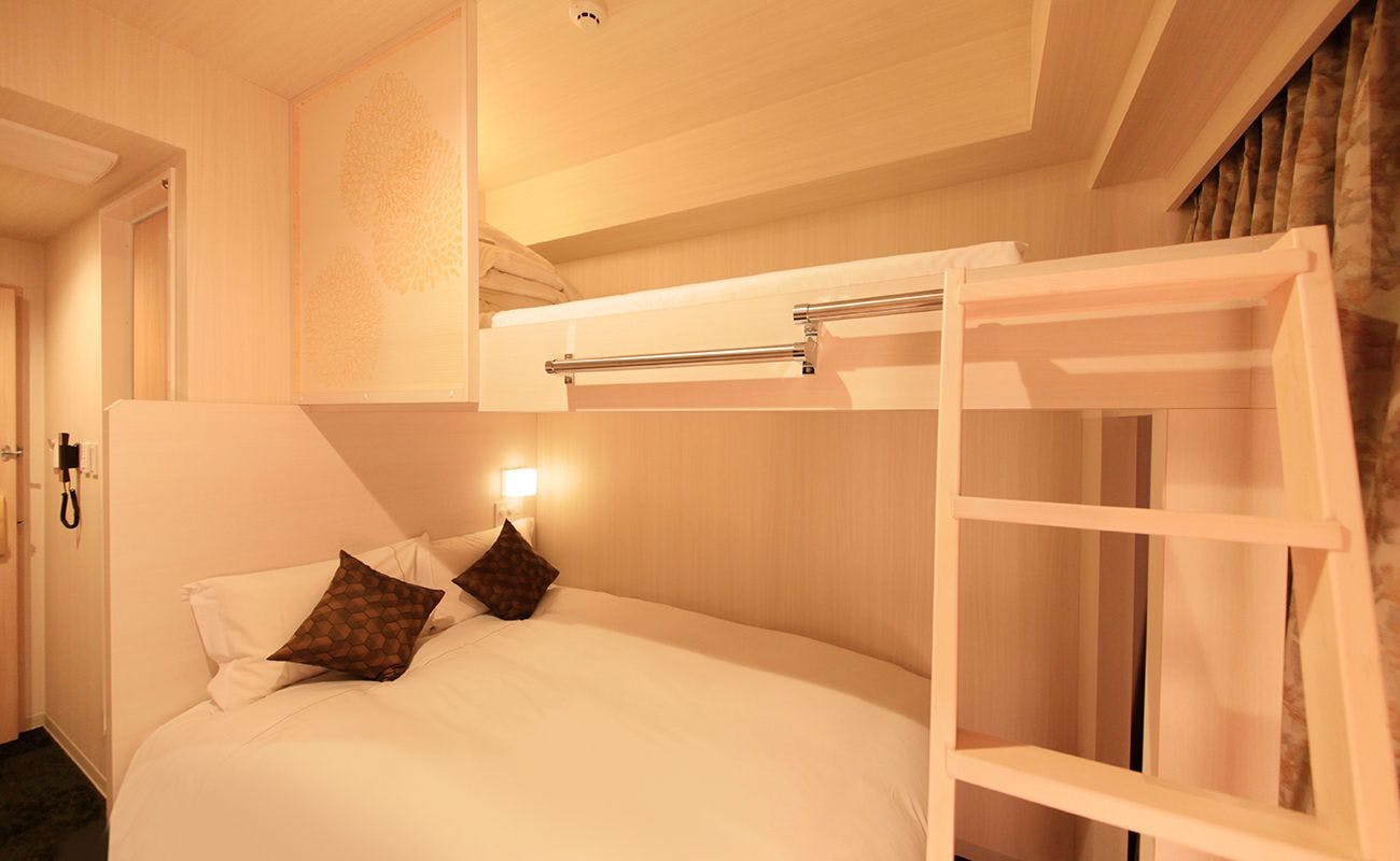 ダブルベッド ロフトベッド /3名様のご予約時(添い寝含まない)のみ上段ベッドをご用意いたします / ※大浴場は本館にあります