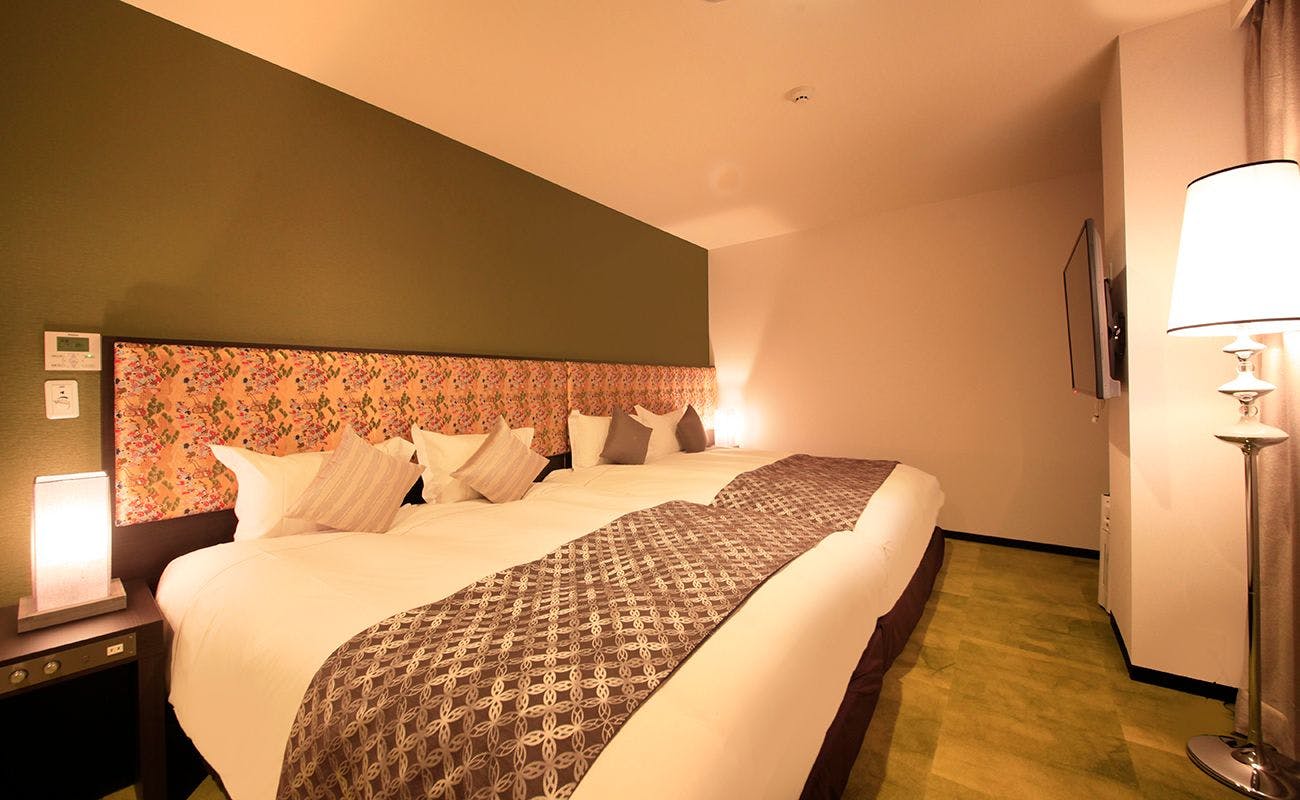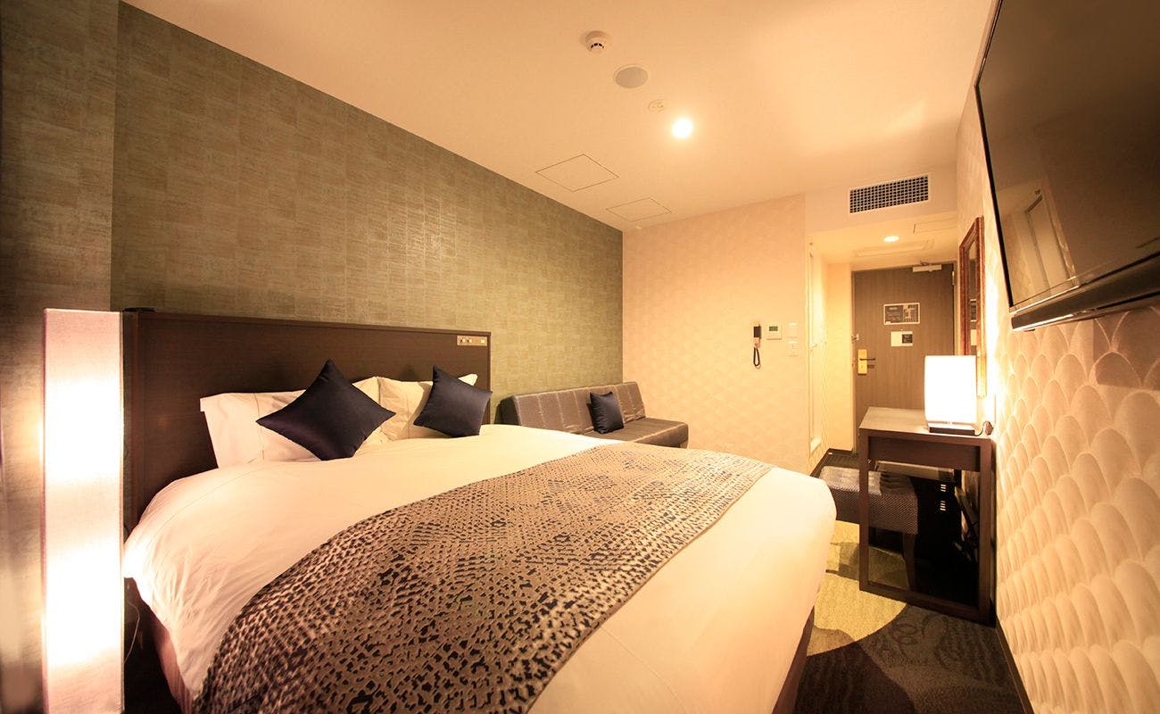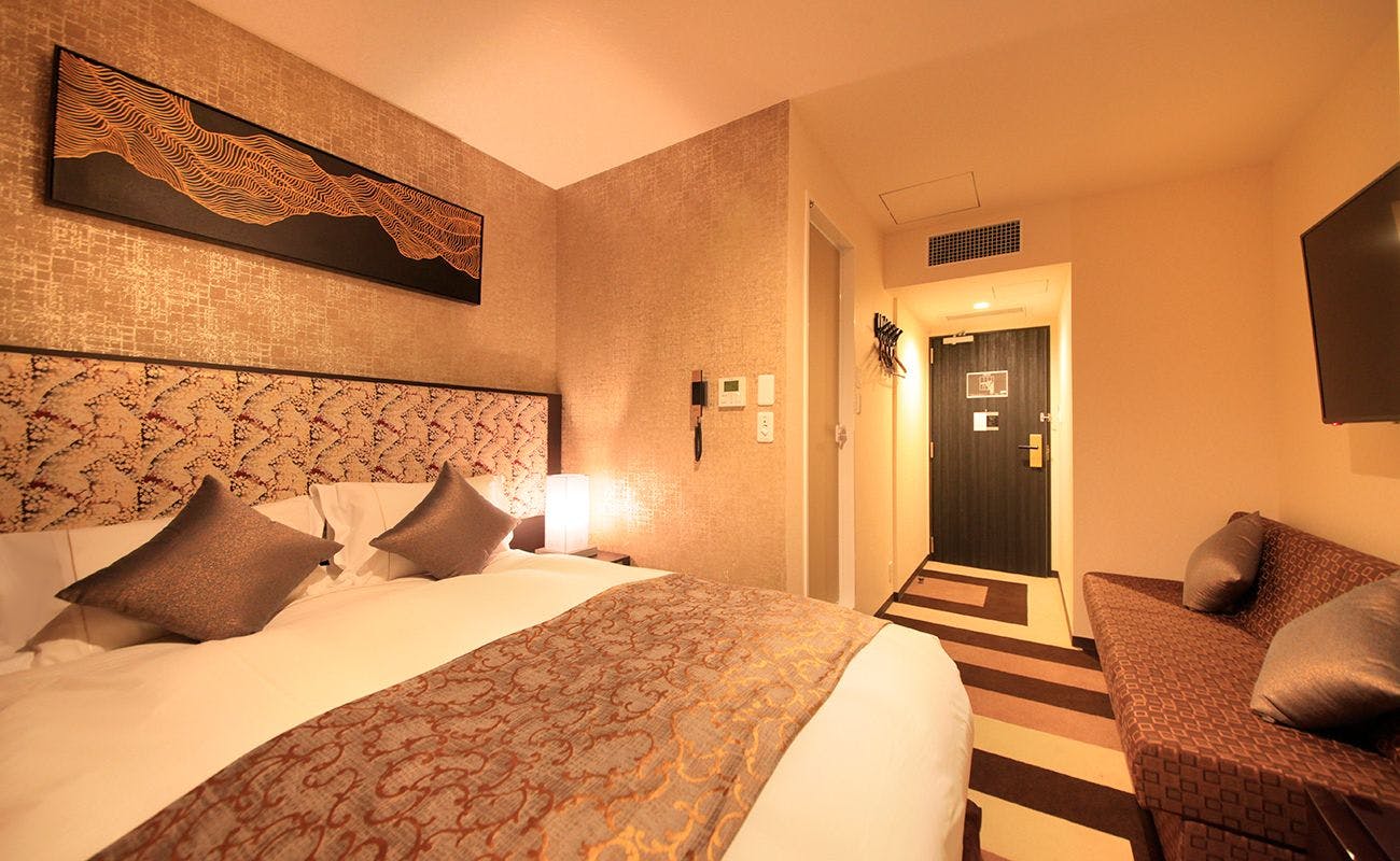 約12平米 / ダブルベッド(140cm) / Wi-Fi無料接続